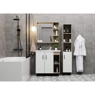 Тумба 80 см ТИМБЕР Белый матовый/дуб сонома с умывальником