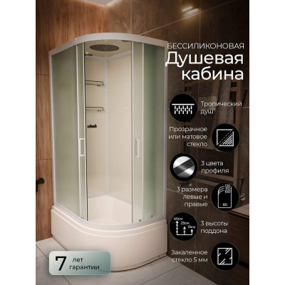 Душевая кабина 120х80х220см F412/2L M Brilliant левосторонняя высокий поддон матовое стекло/Германия