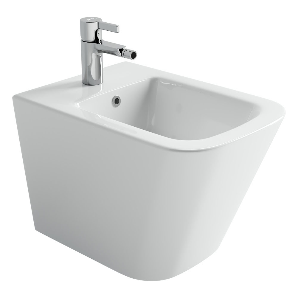 Биде подвесное CeramicaNova Union CN4010/Италия: подвесное биде Union — 1 отверстие под смеситель, с крепежом для полностью скрытого монтажа. Антигрязевая глазурованная поверхность.