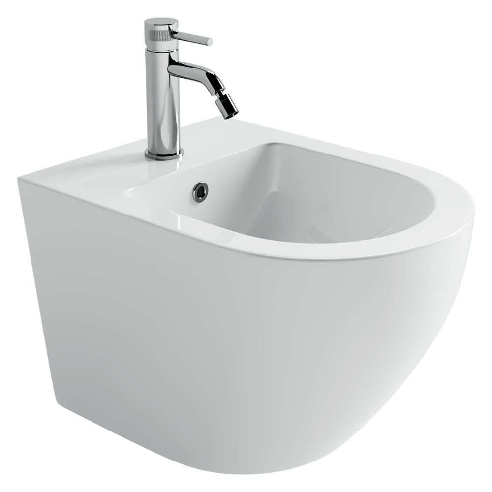 Биде подвесное CeramicaNova Uno CN11002/Италия: подвесное биде Uno — 1 отверстие под смеситель, с крепежом для полностью скрытого монтажа. Антигрязевая глазурованная поверхность.
