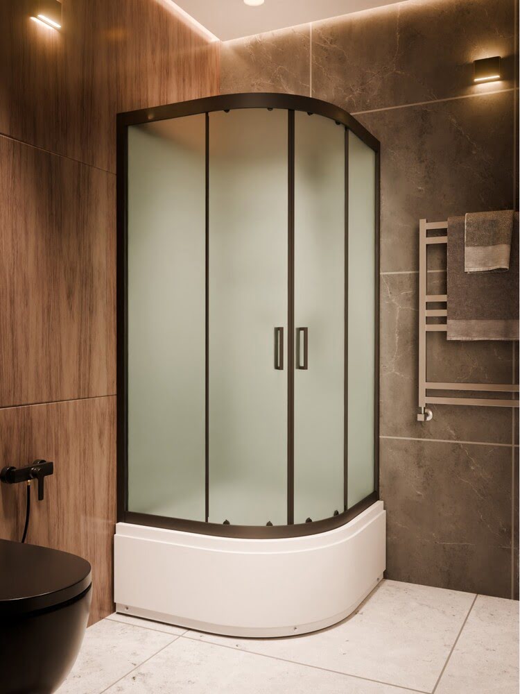 Модель F400/2 M Black Без крыши высокий поддон матовое стекло