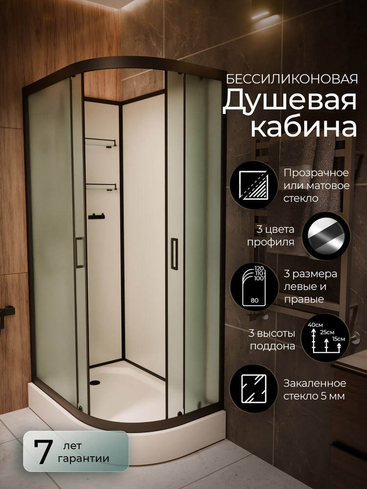 Душевая кабина 100х80х210см F418L M Black Без крыши левосторонняя низкий поддон матовое стекло/Германия: это безсиликоновая сборка, резьбовые соединения на смесителе и душе, двойные ролики с повышенной износостойкостью, металлические магниты на дверях. Неповторимые душевые кабины Frank с качественной фурнитурой способны сильно подчеркнуть стиль ванной комнаты.