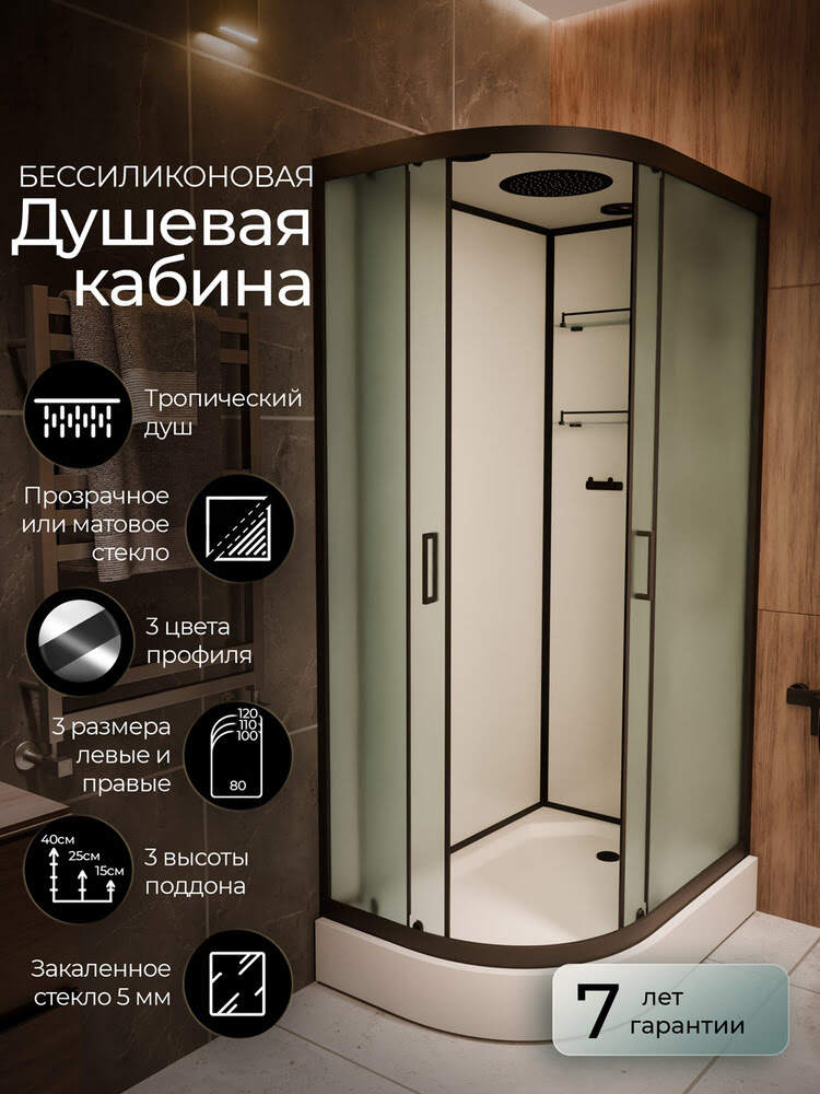 Душевая кабина 100х80х210см F418R M Black правосторонняя низкий поддон матовое стекло/Германия: