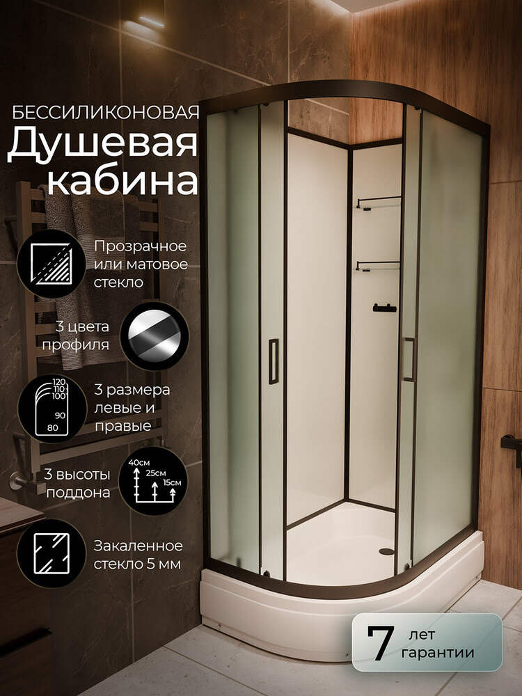 Душевая кабина 120х80х220см F412/1R M Black Без крыши правосторонняя средний поддон матовое стекло/Германия: