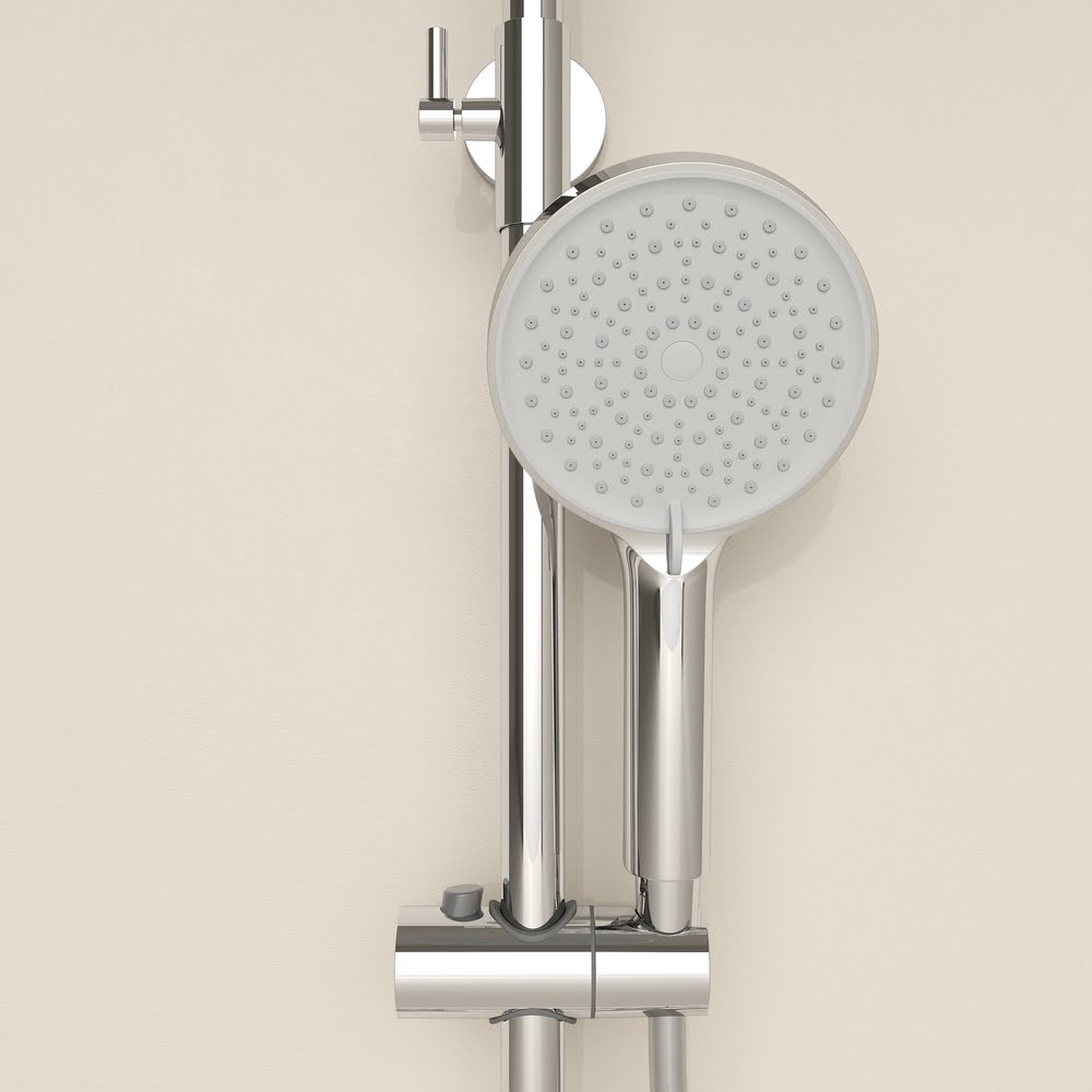 Душевая стойка с термостатическим смесителем SC11001CH Sancos Teo Хром глянцевый/Италия: — душевая стойка, смеситель с термостатом. Возможность регулировки высоты и наклона ручного душа. Верхний душ из металла с регулировкой наклона. Возможность регулировки высоты штанги: 750-1100 мм. Ручной душ — 3 режима с кнопкой переключения. Оснащение — Смеситель с термостатом, штанга, верхний и ручной душ с держателем, шланг 1500 мм.. Гарантия — 60 месяцев! Доставка!