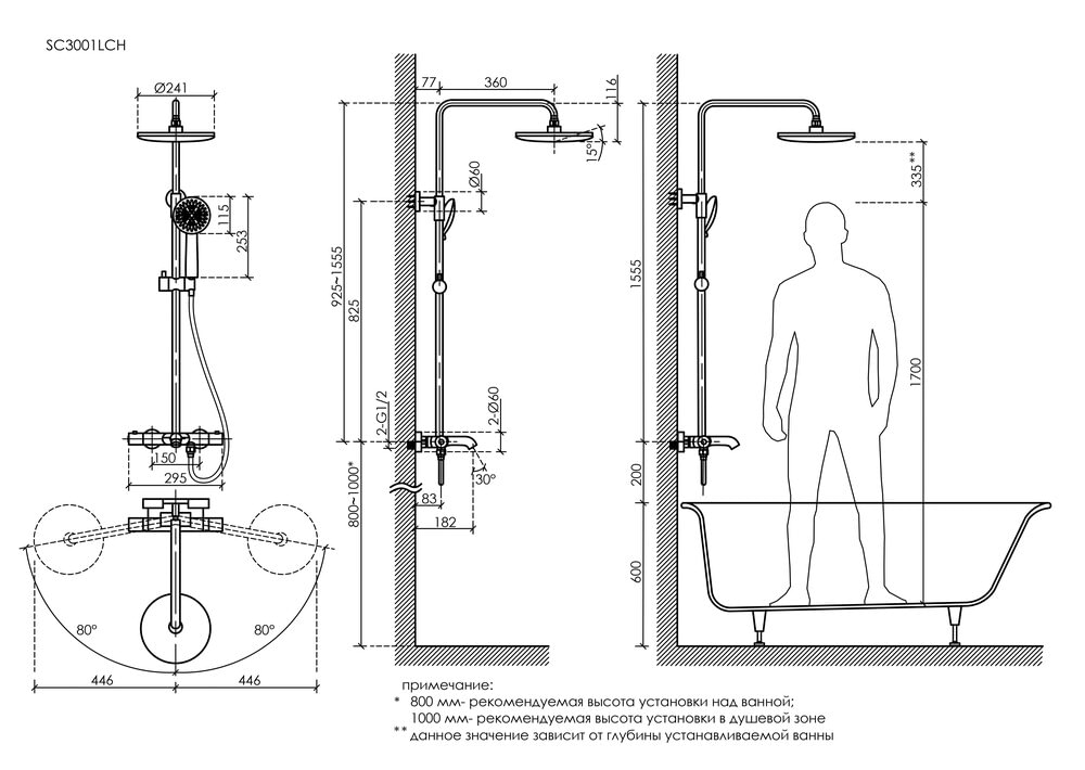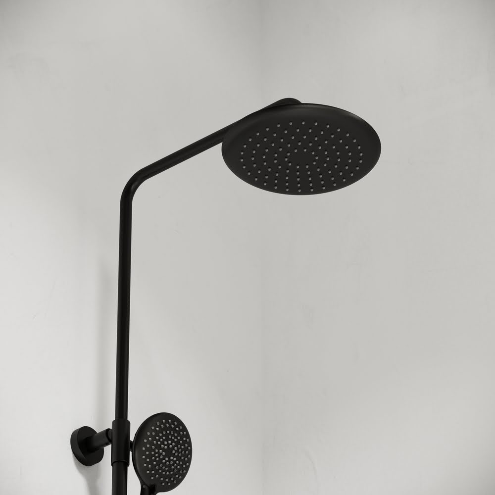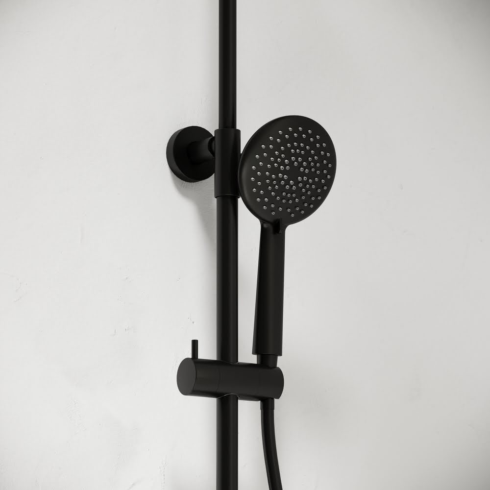 Душевая стойка с изливом и термостатическим смесителем SC3001LMB SANCOS Game для душа/ванны черный матовый/Италия: — душевая стойка регулируемая по высоте с термостатическим смесителем, изливом фиксированным, верхним душем, ручным душем и шлангом в комплекте, цвет — чёрный матовый. Возможность регулировки высоты и наклона ручного душа. Регулировка штанги по высоте от 925 — 1555 мм!!! Смеситель с термостатом из высококачественной латуни!!! Встроенный дивертер для переключения между верхним и ручным душем. Ручной душ ø115 мм — 5 режимов с рычагом для переключения, материал — пластик. Шланг из ПВХ с системой защиты от перекручивания, длина 1500 мм.. Верхний душ из пластика ø240 мм с регулировкой наклона. Безопасное управление температурой благодаря кнопке на ручке!!! Оснащение — смеситель с термостатом/душевой шланг / душевая лейка / держатель для душа / переключатель потоков / эксцентрики.