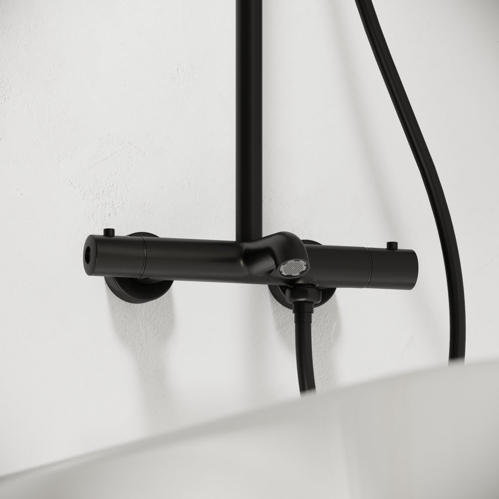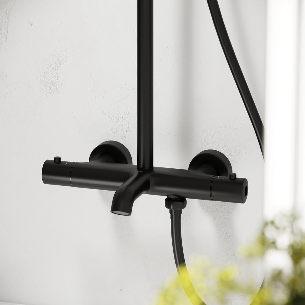 Душевая стойка с изливом и термостатическим смесителем SC3001LMB SANCOS Game для душа/ванны черный матовый/Италия: