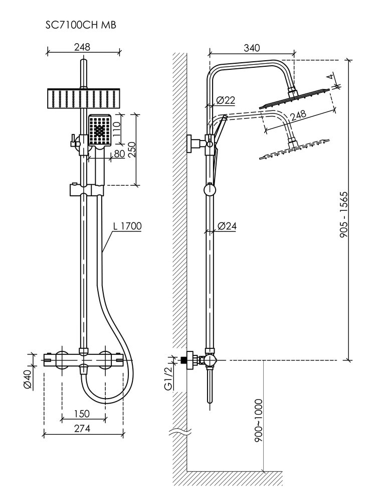Вылет верхнего душа — 340 мм