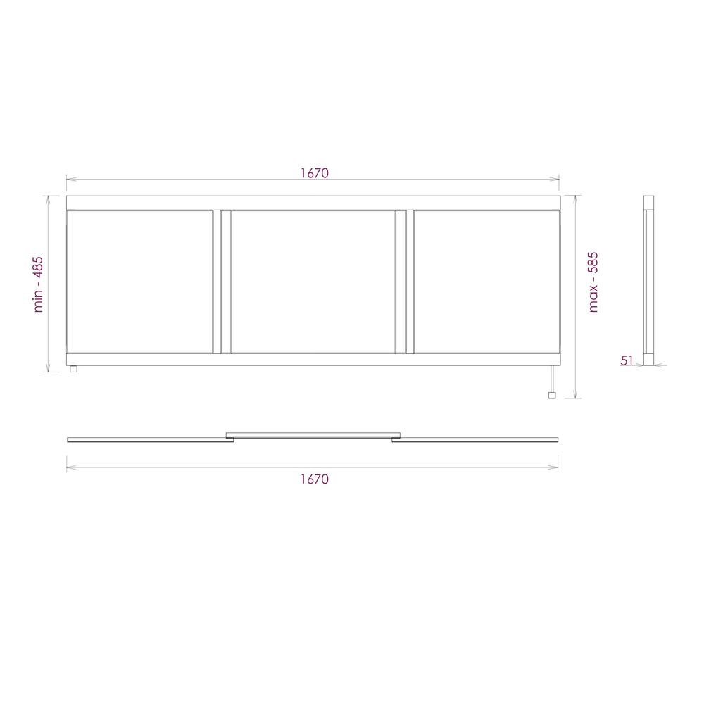 Универсальная передняя панель Экран-купе под ванну ОДИО НОВА 170 белый для прямоугольных ванн длиной 170 см, выполненных из любого материала (акриловые, чугунные, стальные): отлично дополнит любую коллекцию мебели для ванной комнаты, закрыв пространство под ванной и придав законченный целостный вид. А механизм купе позволит иметь доступ под ванну для уборки, технического обслуживания, а также хранения. В отличие от экранов других производителей, каркас изготовлен из АЛЮМИНИЯ и окрашен в белый цвет. Следовательно, ему не страшна влага и ржавчина. Панели выполнены из влагостойкого МДФ, покрытого глянцевой плёнкой. Ножки регулируемые по высоте (до 585 мм). После установки экран будет прочно стоять на своём месте.