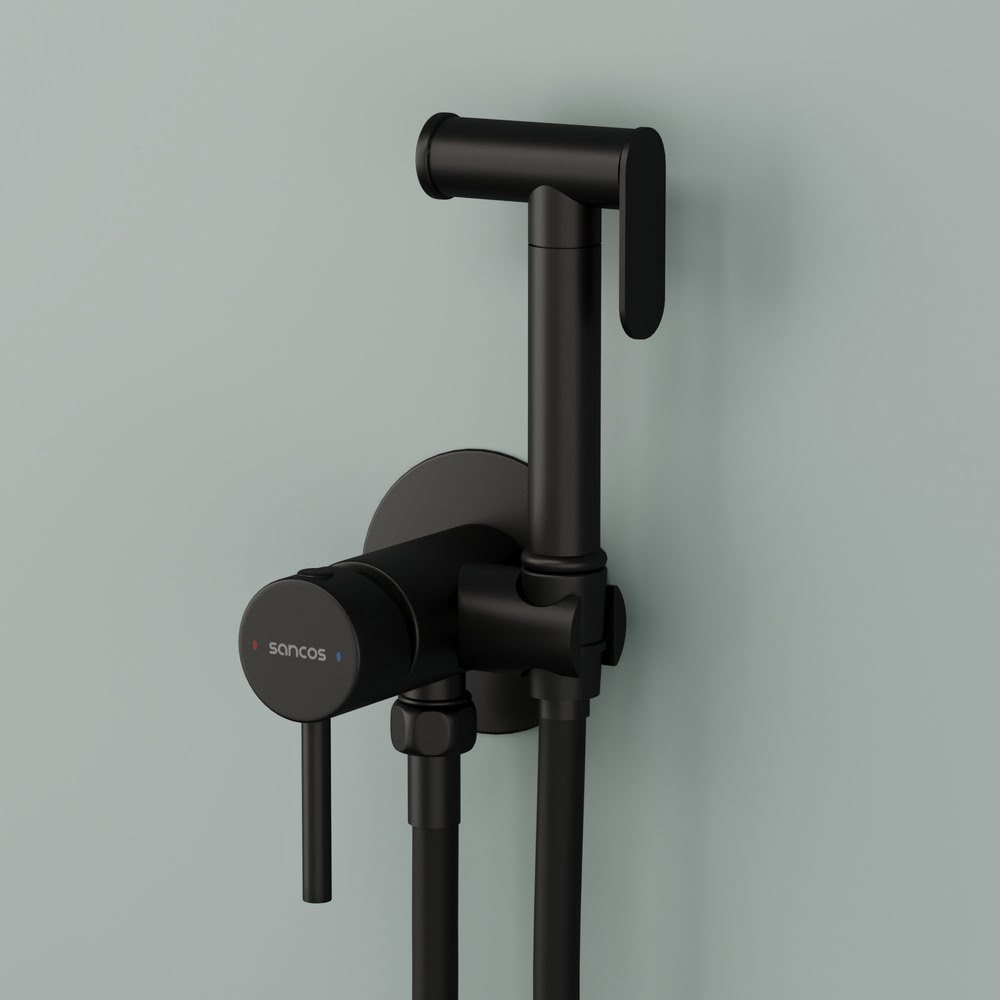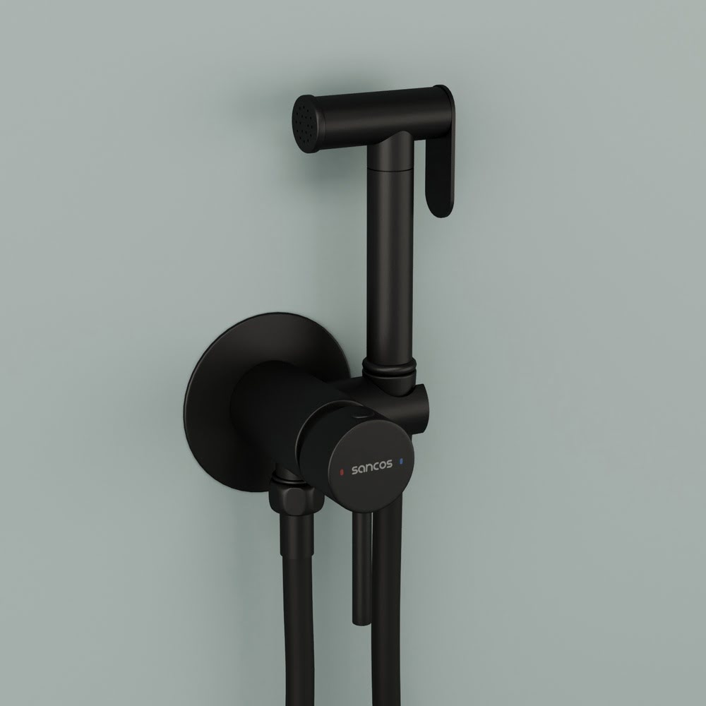 Гигиенический душ встраиваемый SANCOS Start SC1001MB со смесителем c внутренней частью цвет черный матовый настенный/Италия