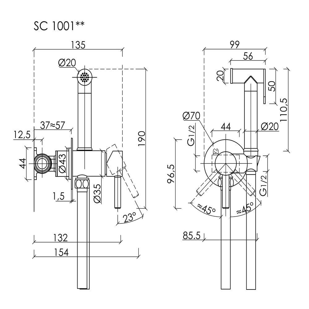 Гигиенический душ встраиваемый SANCOS Start SC1001MB со смесителем c внутренней частью цвет черный матовый настенный/Италия: