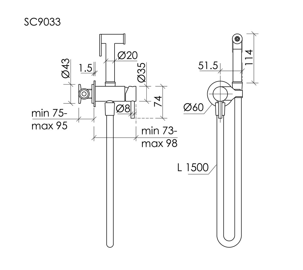Гигиенический душ встраиваемый SC9033BN Sancos Etna со смесителем c внутренней частью Брашированный никель/Италия