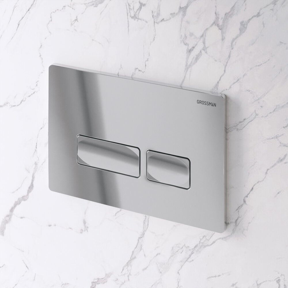 Клавиша смыва хром глянцевый Grossman Pragma 700.K31.03.100.100 /Германия: имеет механический двухрежимный тип слива. Обладает прекрасным внешним видом, поскольку в современных санузлах каждая деталь должна гармонировать с интерьером и соответствовать стилю помещения. Выполнена из ABS-пластика. Клавиша совместима с Инсталляция для подвесного унитаза Grossman 900.K31.01.000