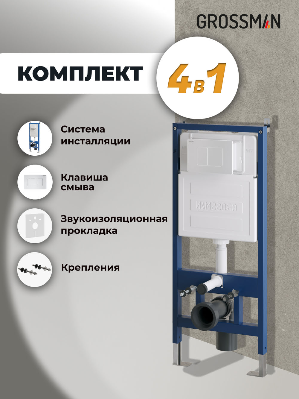 Комплект 2 в 1: инсталляция GROSSMAN 900.K31.01.000+клавиша смыва Classic 700.K31.04.01M.01M белая матовая НЕРЖАВЕЙКА /Германия: