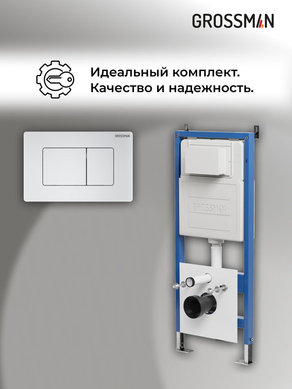 Система инсталляции для унитазов Grossman и клавиша смыва НЕРЖАВЕЙКА CLASSIC цвет белый матовый