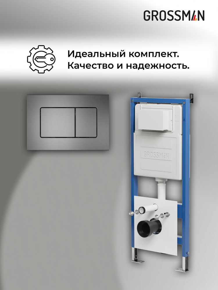 Комплект 2 в 1: инсталляция GROSSMAN 900.K31.01.000+клавиша смыва Classic 700.K31.04.42M.42M графит сатиновый НЕРЖАВЕЙКА /Германия: Инсталляция для подвесного унитаза Grossman 900.K31.01.000 для скрытого монтажа + Клавиша 700.K31.04.42M.42M