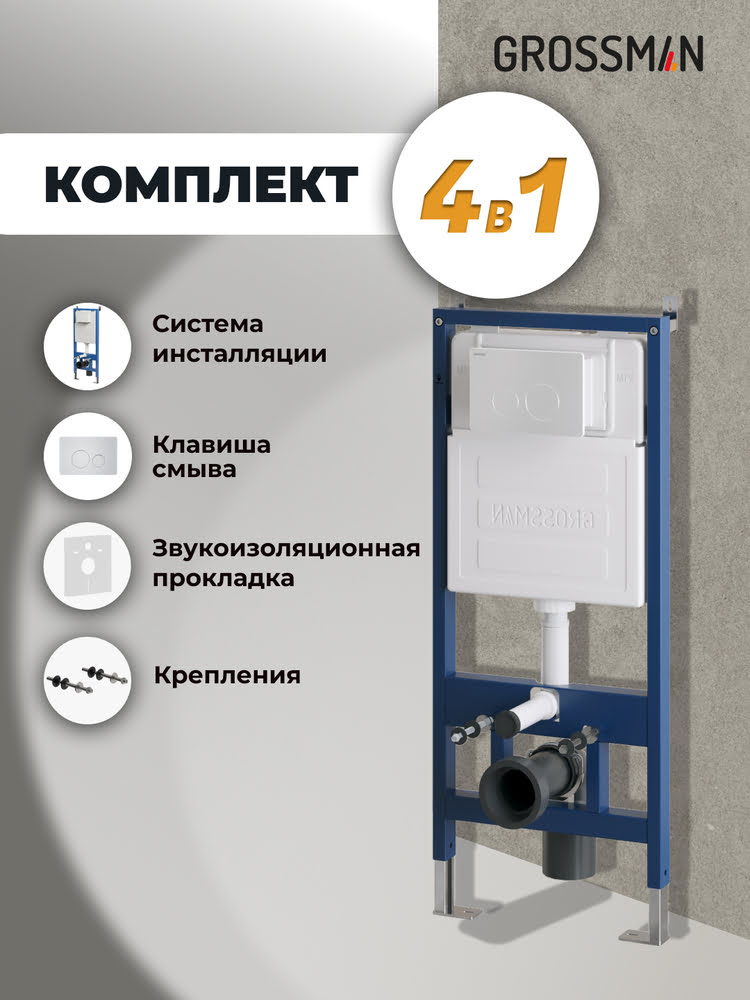 Комплект 2 в 1: инсталляция GROSSMAN 900.K31.01.000+клавиша смыва Style 700.K31.05.01M.01M белая матовая НЕРЖАВЕЙКА /Германия: