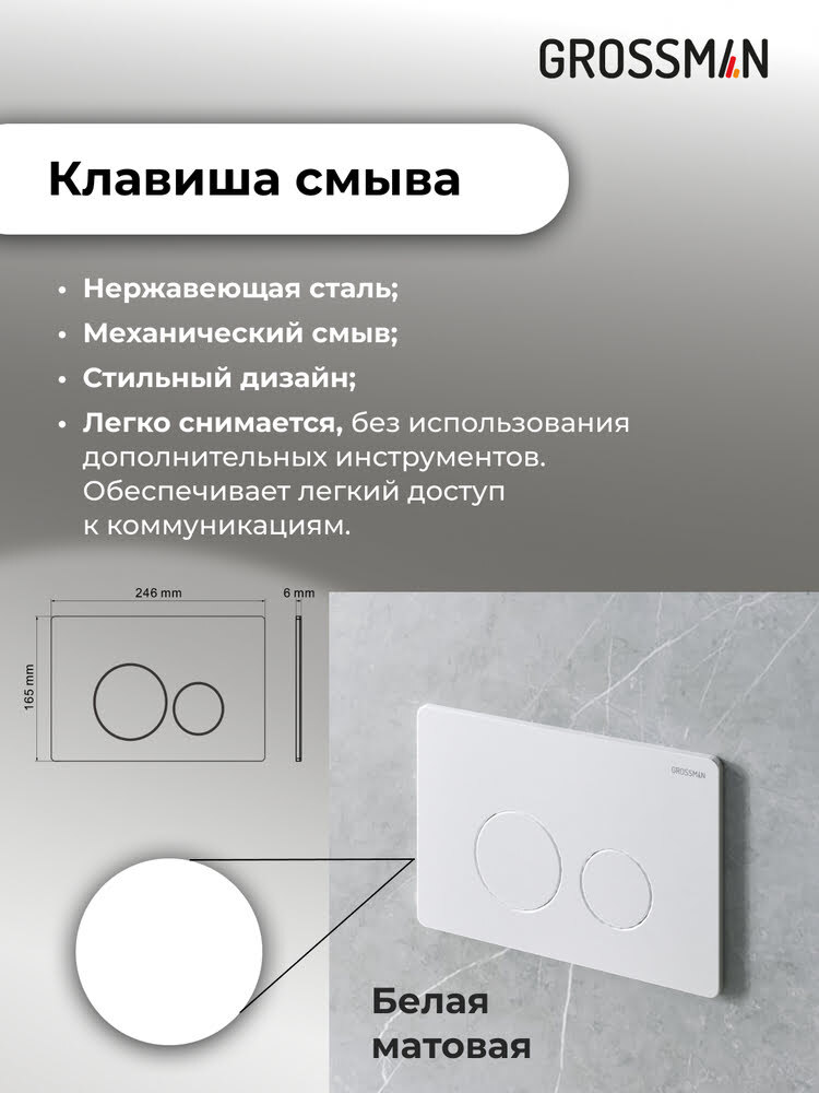 Система инсталляции для унитазов Grossman и клавиша смыва STYLE цвет белый матовый