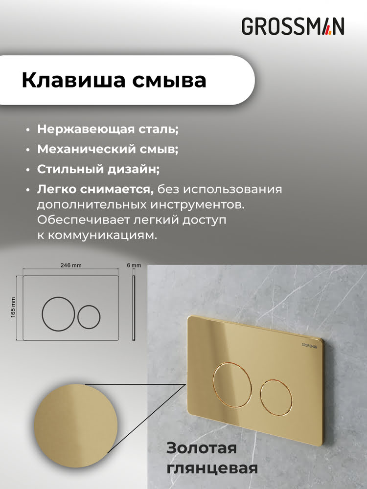 Комплект 2 в 1: инсталляция GROSSMAN 900.K31.01.000+клавиша смыва Style 700.K31.05.30M.30M золотая глянцевая НЕРЖАВЕЙКА /Германия: