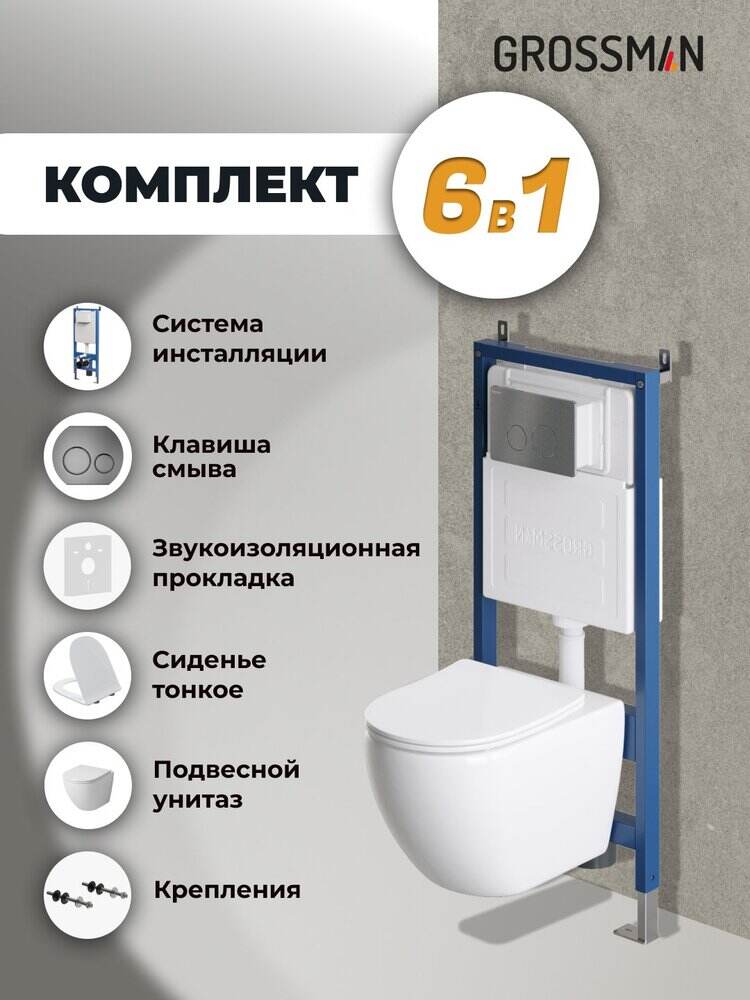 Комплект 3 в 1: инсталляция 900.K31.01.000+клавиша 700.K31.05.42M.42M+унитаз GR-4411S/Германия: подвесной унитаз GR-4411S + Инсталляция для подвесного унитаза Grossman 900.K31.01.000 для скрытого монтажа + Клавиша 700.K31.05.42M.42M