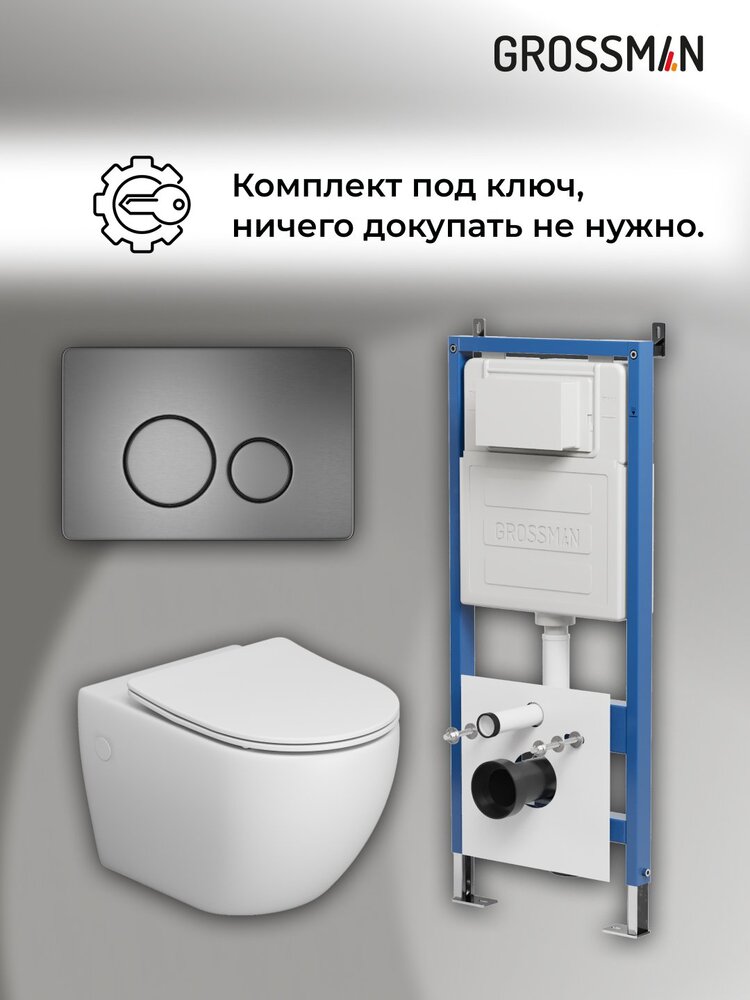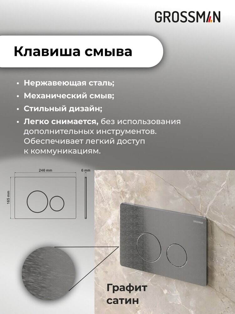подвесной унитаз GR-4411S + Система инсталляции для унитазов Grossman с клавишей смыва STYLE цвет графит сатиновый НЕРЖАВЕЮЩАЯ СТАЛЬ