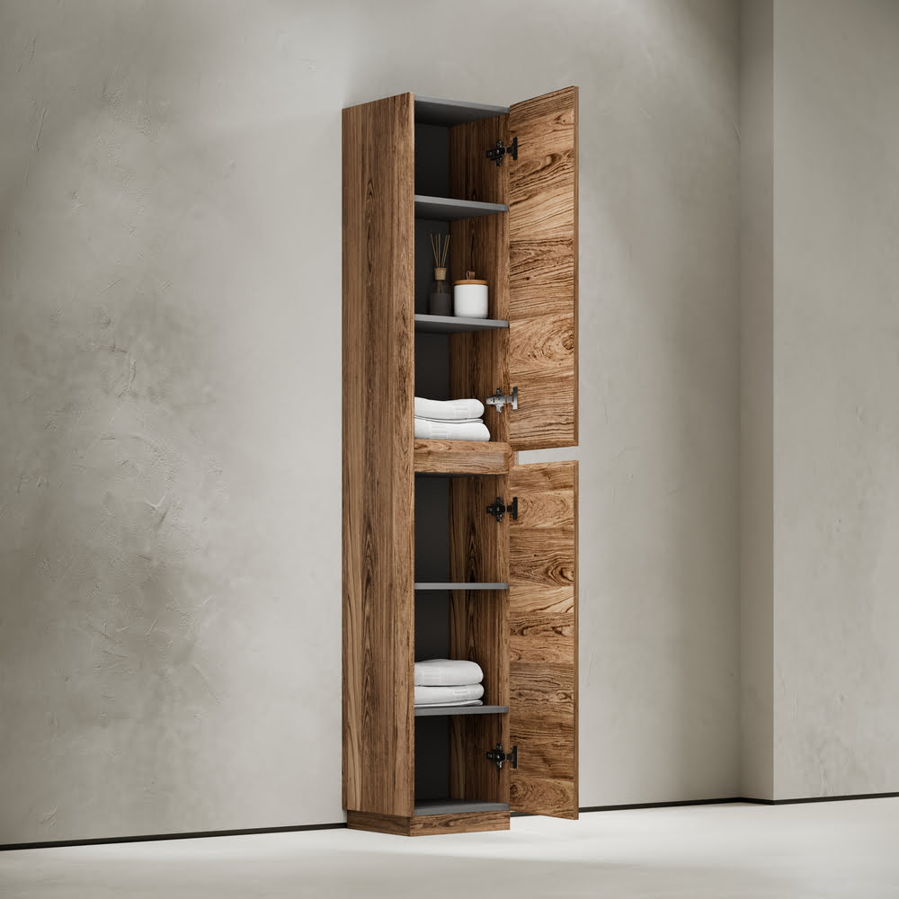 Пенал 35 см Libra Floor SANCOS Дуб чарльстон Напольный: пенал напольный SANCOS Libra Floor поможет создать особенную атмосферу ванной комнаты!!! Цвет — Дуб чарльстон — создаёт сдержанный выразительный акцент в интерьере. Две дверцы, петли с доводчиками, расположение петель ЛЕВОЕ / ПРАВОЕ, размеры — 350х300х1870 мм.. Корпус и фасад — ЛДСП Egger, устойчивой к механическим воздействиям, перепадам температур и высокой влажности!!! Поверхность — матовая!!! Основание пенала имеет ножки c регулировкой высоты до 10 мм для компенсации возможной неровности напольного покрытия. Оснащение — комплект доводчиков, комплект креплений, инструкция.