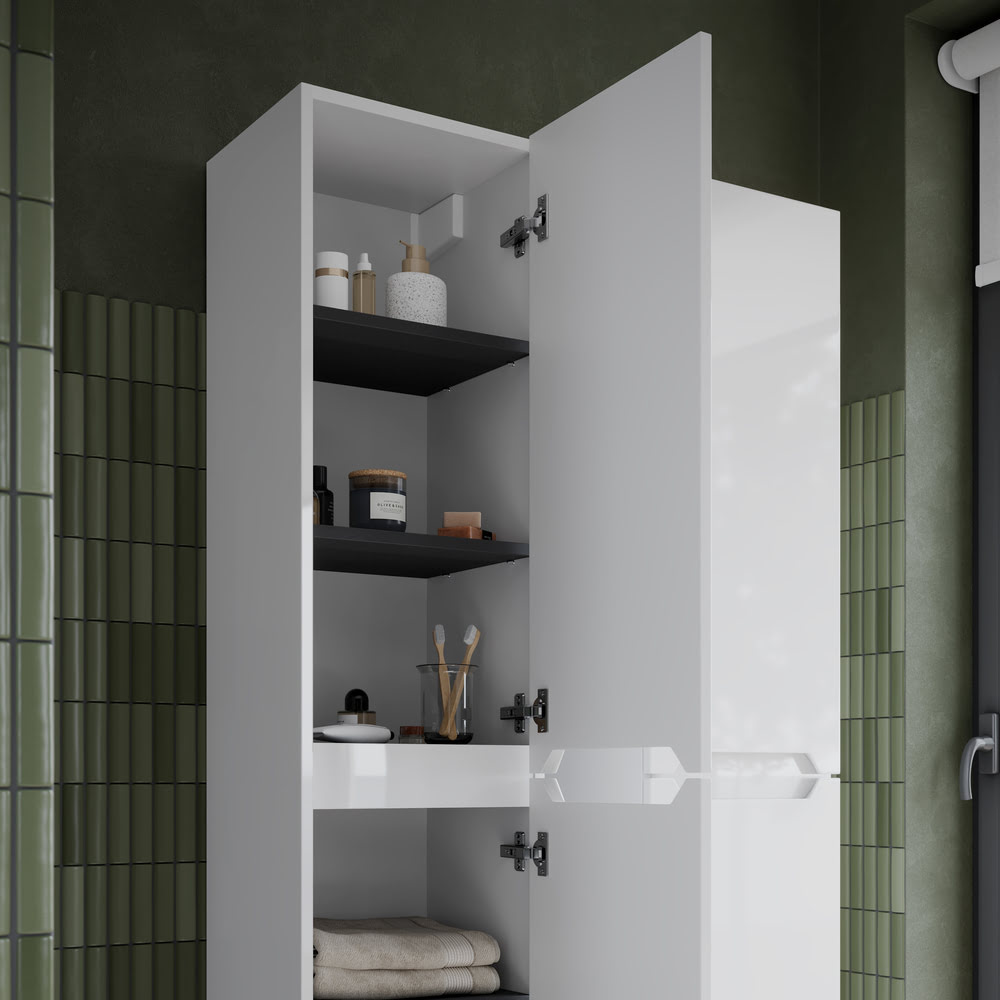 Пенал 35 см Norma 2.0 SANCOS Белый глянец Подвесной: пенал подвесной SANCOS Norma 2.0 поможет создать особенную атмосферу ванной комнаты!!! Цвет — Белый глянец — создаёт сдержанный выразительный акцент в интерьере. Две дверцы, петли с доводчиками, расположение петель ЛЕВОЕ / ПРАВОЕ, размеры — 350х350х1650 мм.. Корпус пенала — ЛДСП Egger белый глянец и фасад изготовлен из МДФ покрытого плёнкой, устойчивой к механическим воздействиям, перепадам температур и высокой влажности!!! Поверхность — глянцевая!!! Оснащение — комплект доводчиков, комплект креплений, инструкция.