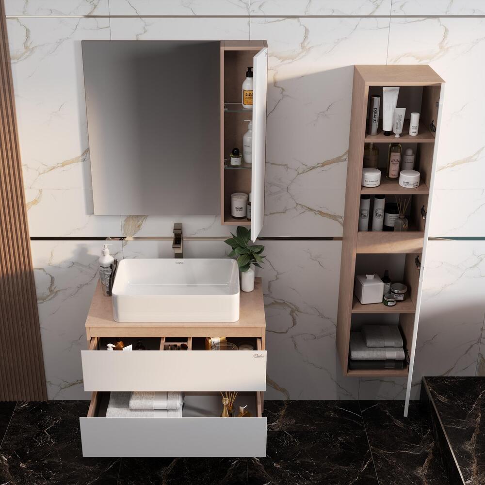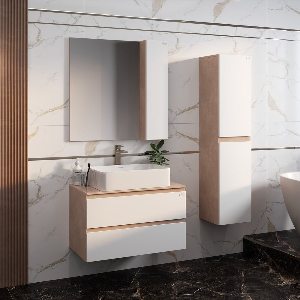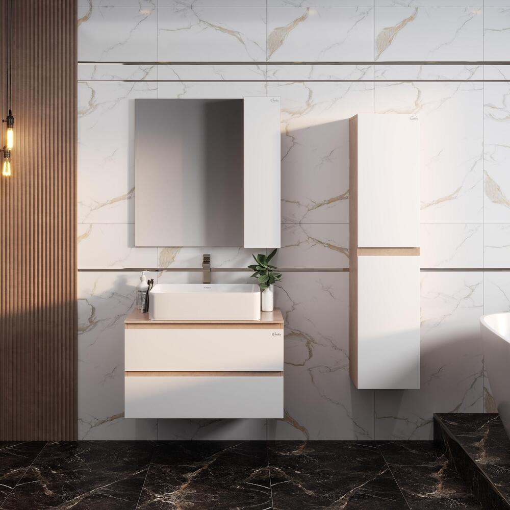 Пенал АЛЕСТА 35 подвесной белый/камень светлый для ванной комнаты: