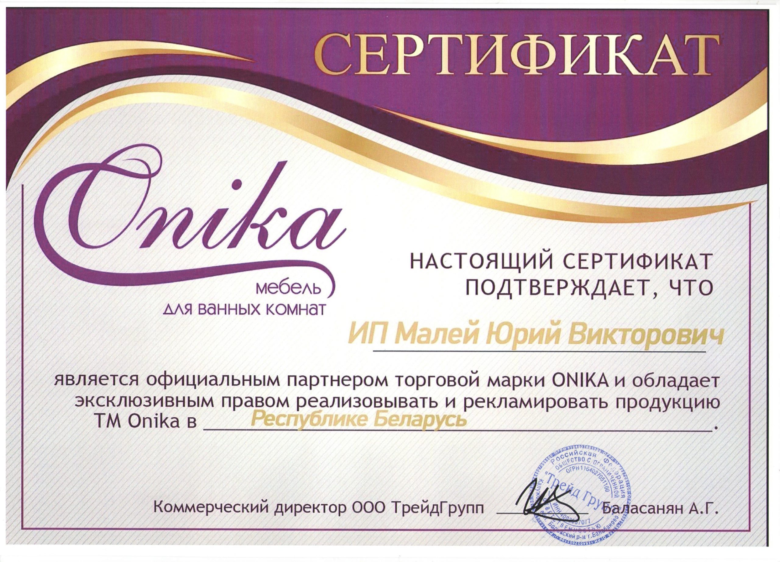 Официальный поставщик Onika в РБ!