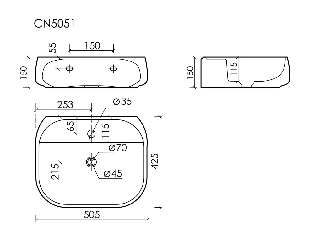 Раковина 500x425x145мм Fonte CeramicaNova накладная/подвесная прямоугольная CN5051/Италия: современная дизайнерская раковина с безупречностью линий и лаконичностью форм. !!!Раковина CN5051 накладного и подвесного монтажа. Отверстия на задней части раковины под крепеж позволяют подвешивать раковину на стену. Крепления для установки в комплекте. Раковина глазурированная с 4 х сторон. С отверстием под смеситель. Защитный бортик от выплеска воды!!! Санфарфор, из которого сделаны умывальники CeramicaNova/Италия, отличается практичностью, повышенной прочностью, стойкостью к царапинам, экологичны и совершенно безвредны. Поставляется Умывальник CN5051/Италия в коробке из прочного картона. Способ установки — накладной к столешнице. БЕЗ ПЕРЕЛИВА! Рекомендуем: донный клапан с системой «Клик-Клак» CeramicaNova CN2000 Белый