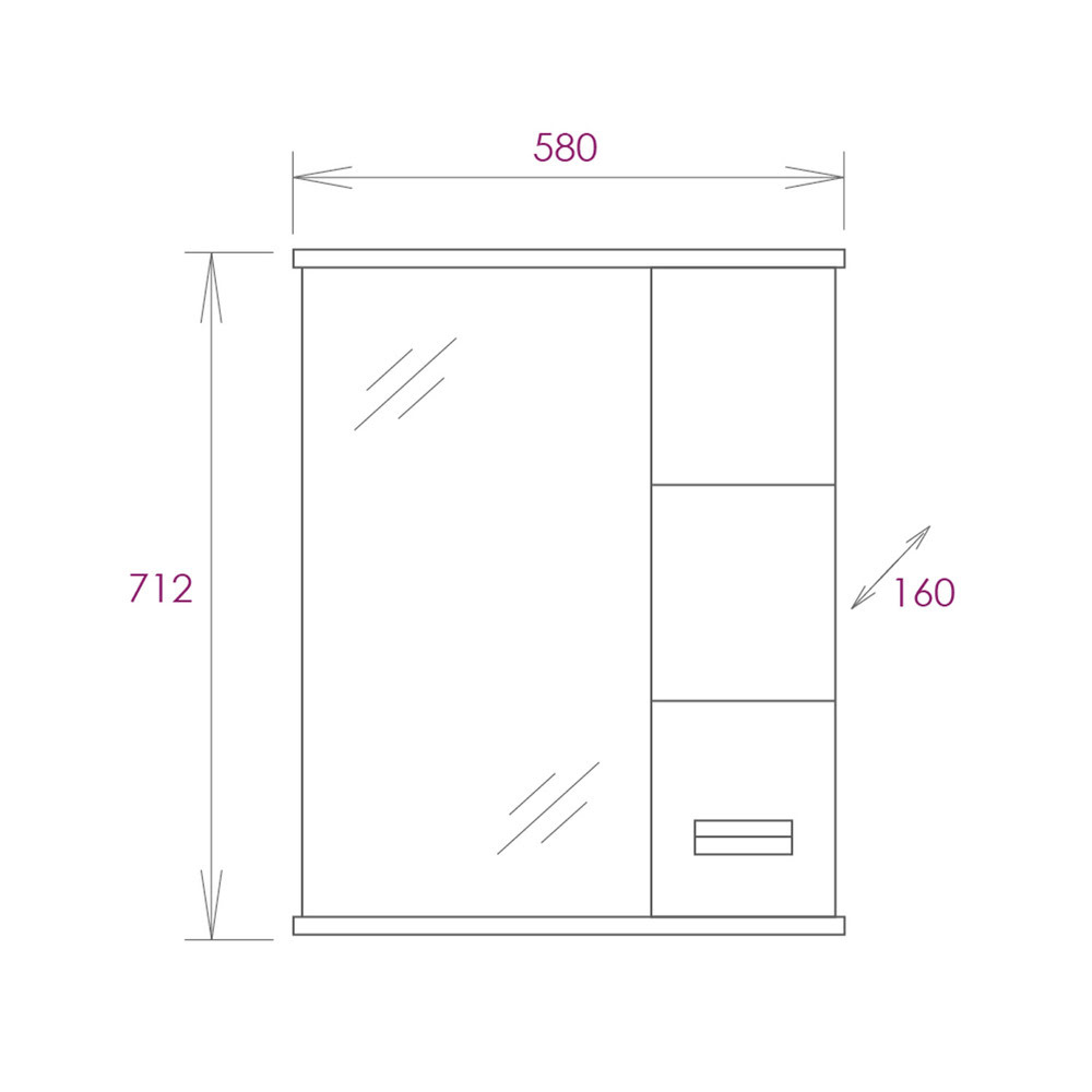 Шкаф-зеркало БАЛТИКА 58 см Правый для ванной комнаты: