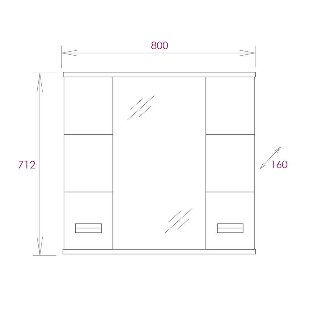 Глянцевый белый цвет, ненавязчивая горизонтальная фрезеровка, стильная врезная хромированная фурнитура и аккуратная лаконичность — все это позволяет коллекции Балтика стать центральным звеном интерьера. По бокам от зеркала за распашными дверцами с механизмом плавного закрывания расположены отделения для хранения, разделенные на две части горизонтальными полочками, под зеркалом — открытая полочка для косметических средств или декоративных элементов. Зеркальное полотно создано на основе серебряной амальгамы, которая обеспечивает качественное изображение, влагостойкость и долгий срок эксплуатации. Источник света шкафа — врезной светодиодный модуль, дополненный механическим выключателем и встроенной розеткой. Количество ламп — 1, мощность лампы — 4 Вт, световая температура — 4500 К, тип выключателя — механический. Корпус шкафа-зеркала выполнен из ЛДСП, фасад — из ЛМДФ в пленке, устойчивых к механическим воздействиям, перепадам температур и высокой влажности. Подвесы для крепления шкафа к стене — в комплекте. Габариты изделия 80x16x71 см..