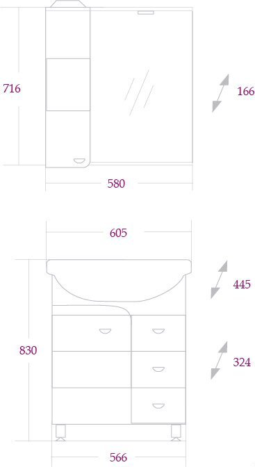 Шкаф-зеркало СТИЛЬ 58 см Правый