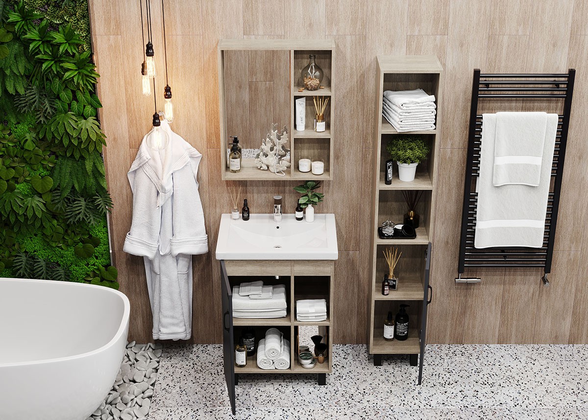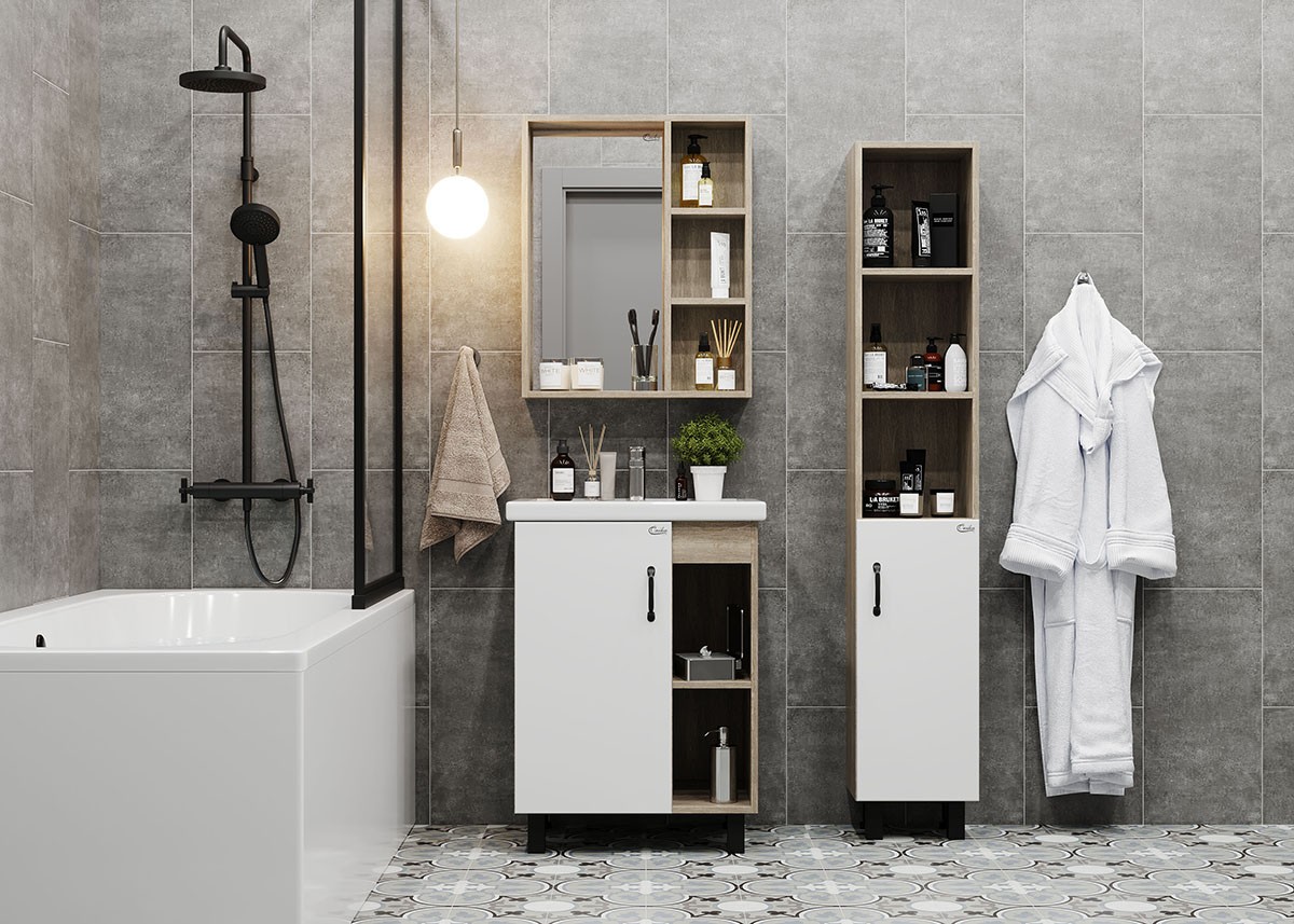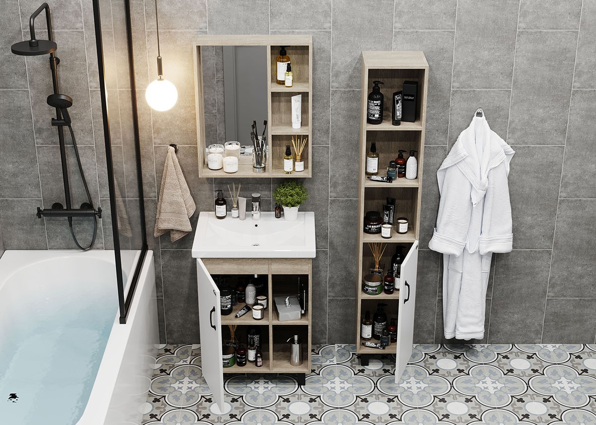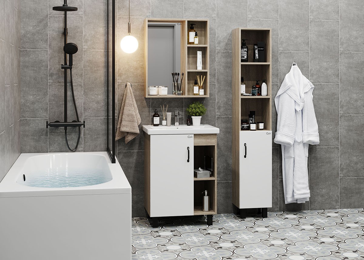 Шкаф-зеркало ТИМБЕР 60 см Дуб сонома отражает актуальные тенденции в дизайне мебели для ванной комнаты: минимализм и геометрия фасадов, чёткость и лаконичность форм. Несмотря на небольшие размеры, шкаф достойно выполнит задачу по хранению: открытое отделение с полочками служит дополнительным местом для хранения. Зеркальное полотно создано на основе серебряной амальгамы, которая обеспечивает качественное изображение, влагостойкость и долгий срок эксплуатации. Шкаф-зеркало выполнен из ЛДСП, устойчивой к механическим воздействиям, перепадам температур и высокой влажности. Подвесы для крепления шкафа к стене — в комплекте. За мебелью, изготовленной из такого материала, легко ухаживать — достаточно протереть фасады слегка влажной губкой. Шкаф-зеркало ТИМБЕР 60 см поставляется в собранном виде в коробке из прочного картона. Монтаж — подвесной.