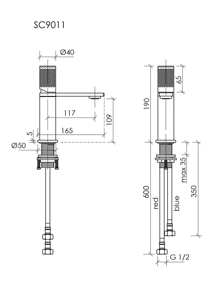 Ширина смесителя — 40 мм