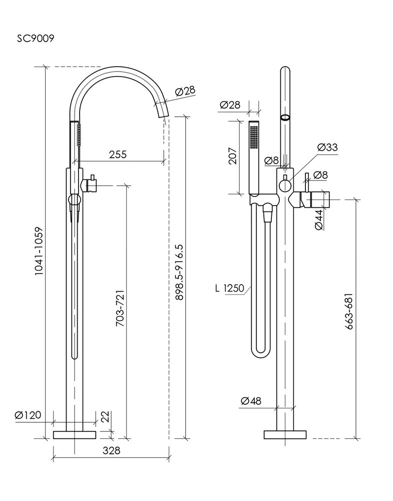 Высота излива — 917 мм
