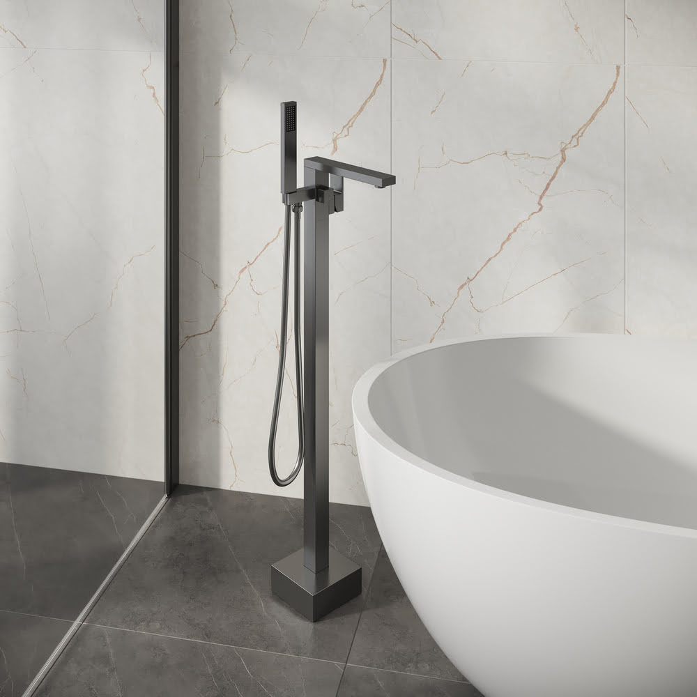 Смеситель напольный для ванны серии Falcon 530.K35.08.420 графит сатиновый Grossman / Германия: в брашированном графитовом исполнении с ручным душем и изливом — это идеальное сочетание высокого качества и доступной цены. Она подходит для установки на пол к отдельностоящим ваннам.