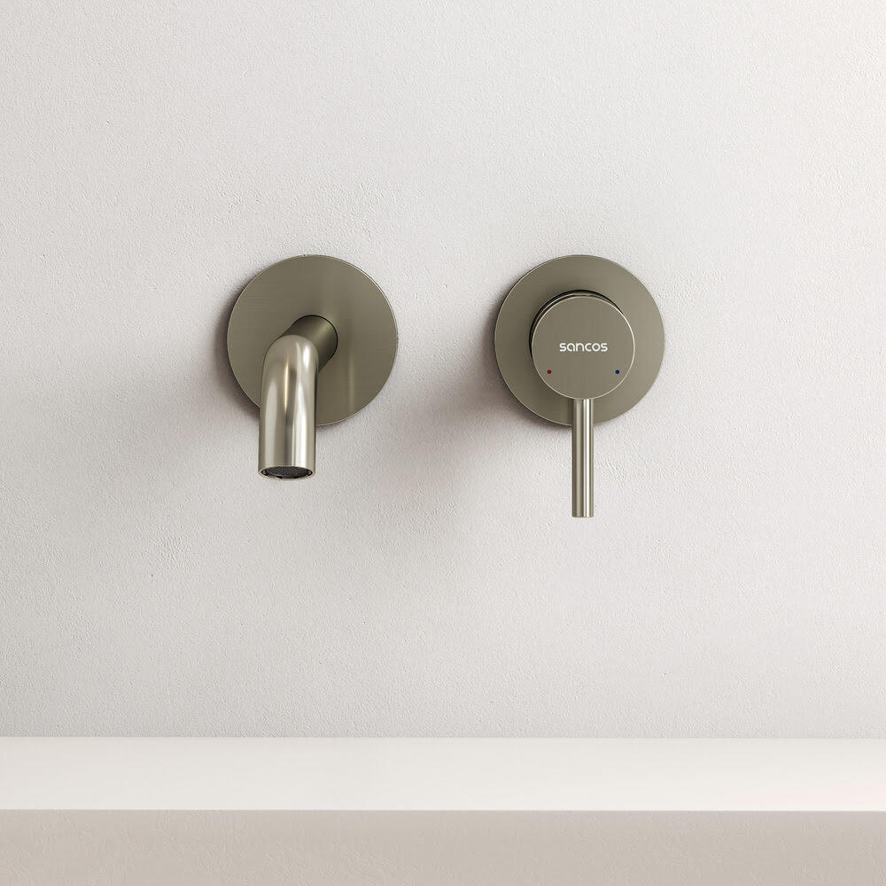 Смеситель встраиваемый для раковины SC9004BN SANCOS Etna с внутренней частью брашированный никель/Италия: встраиваемый в стену смеситель для раковины с внутренней частью из латуни. Точная регулировка температуры и напора воды с используемыми картриджами SEDAL (Испания). Мягкий поток воды без разбрызгивания за счёт силиконовых аэраторов Neoperl®. Экстра прочное покрытие PVD!!! Цвет — брашированный никель. Поверхность — матовая. Комплект — внутренняя часть смесителя, внешняя часть смесителя, излив, подводка, инструкция.