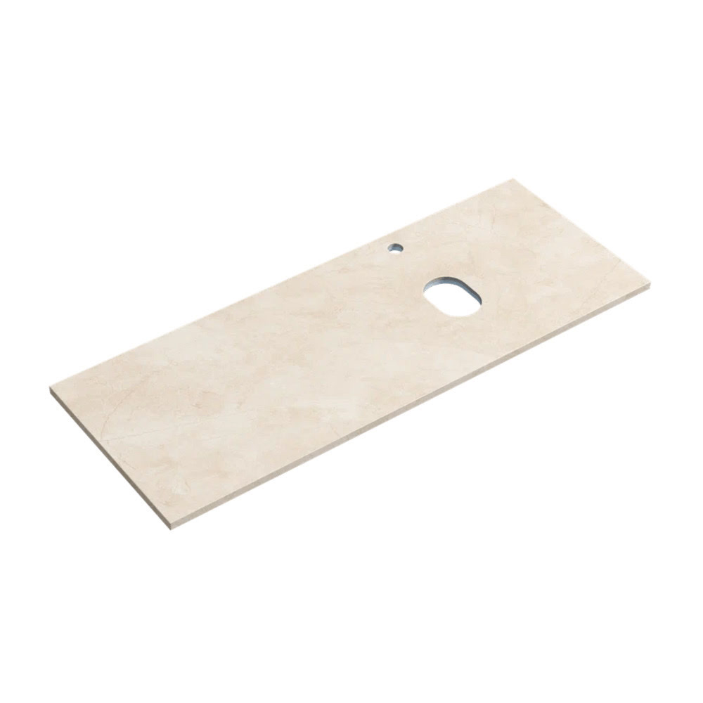 Столешница для ванной комнаты Sancos TT120A2XR 1200х460 мм ПРАВАЯ с отверстием под смеситель — cтолешница с фактурой мрамора — идеальное решение для любого интерьера!!! Столешница — прямоугольной формы матовой поверхностью цвета kreman изготовлена из керамогранита по двухслойной технологии — Верхний слой обеспечивает защиту от воды и стойкость даже к самым агрессивным условиям эксплуатации, а Нижний слой состоит из усиленного полистирола, благодаря чему столешница обладает механической плотностью и повышенной звукоизоляцией!!! !!!Края столешницы проходят дополнительную обработку для создания идеальной эстетики и безопасности использования!!! Совместима с коллекциями Sancos: Folk / Very / Snob R / Snob R 1.0 / Snob T / Marmi 1.0 / Marmi 2.0 / Delta / Norma 2.0 / Urban / Cento / Libra и совместима с раковинами глубиной не более 360 мм!!! Рекомендуемые раковины Ceramicanova к столешнице — CN5001 / CN5010 / CN5021 / CN5022 / CN5023 / CN6005 / CN6009 / CN6015 / CN6018 / CN6019 / CN6032 . Монтаж на тумбу с помощью герметика!!! Гарантия 24 месяца! Доставка!
