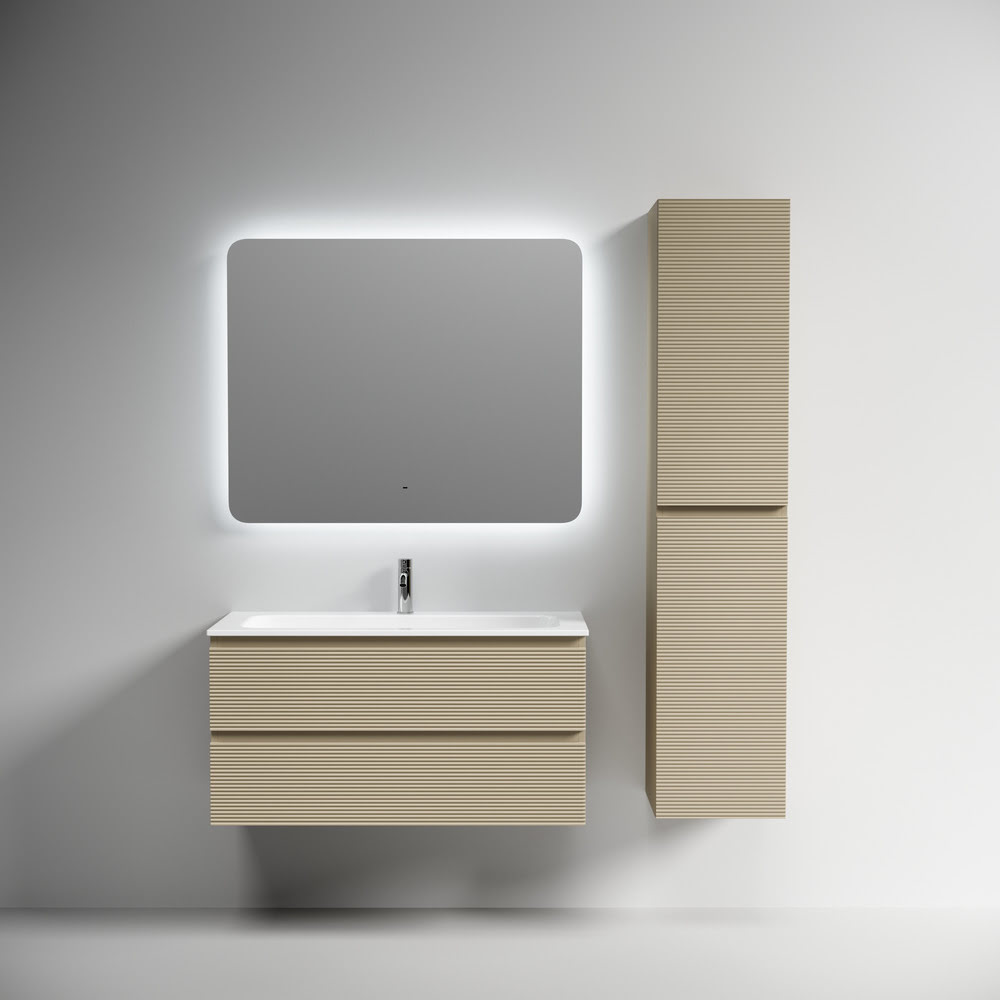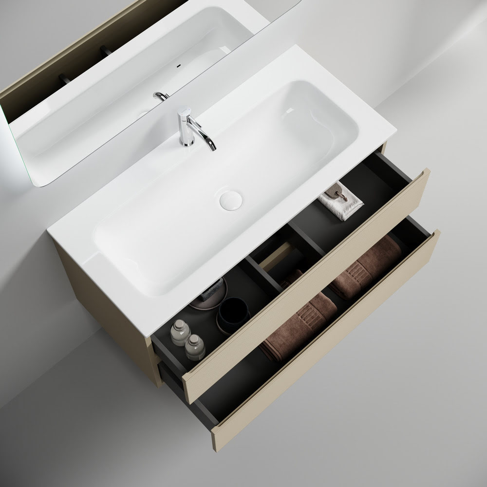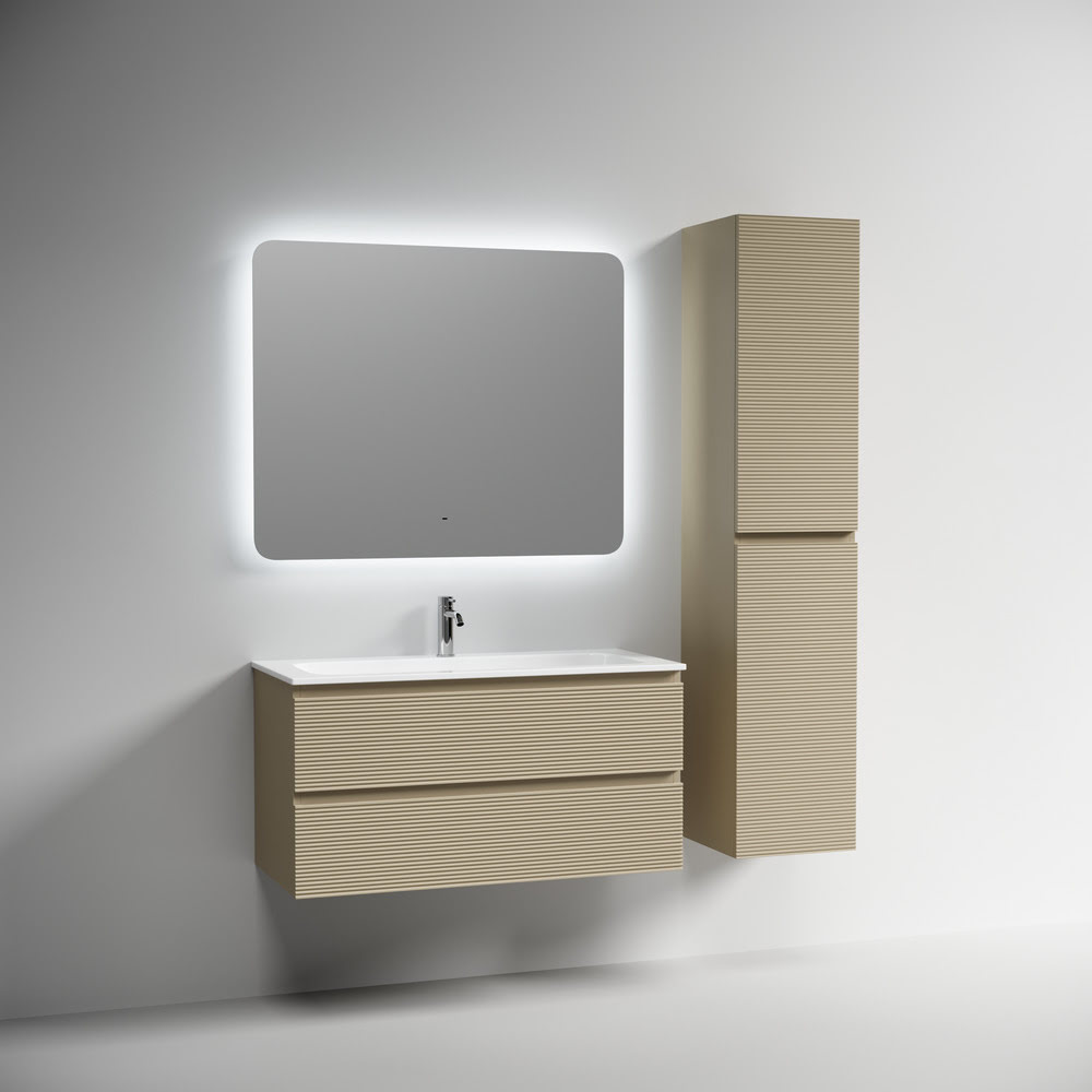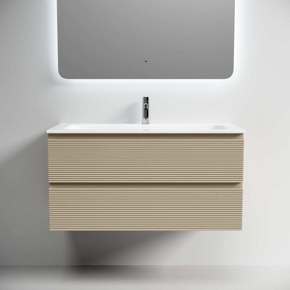Тумба 100 см Folk Капучино ПОДВЕСНАЯ Sancos с умывальником CN7013: тумба подвесная с рельефным фасадом SANCOS Folk размером 995 х 445 х 500 мм, c двумя ящиками оснащенными доводчиками скрытого монтажа с системой плавного закрывания Soft close, цвет — Капучино!!! Корпус и фасад тумбы изготовлен из влагостойкого МДФ, покрытого матовой плёнкой ПВХ. Комплектуется умывальником — CN7013. Размеры умывальника: ширина — 1010 мм, глубина — 457 мм, высота — 137 мм. Монтаж тумбы — подвесной. Оснащение — комплект доводчиков, комплект креплений, инструкция. !!!ВНИМАНИЕ: Тумба 100 см Folk Капучино ПОДВЕСНАЯ Sancos ТАКЖЕ СОВМЕСТИМА с умывальниками — CN7013MB / CN7013wx / CN7013MBwx / CN7003 / CN7003MB