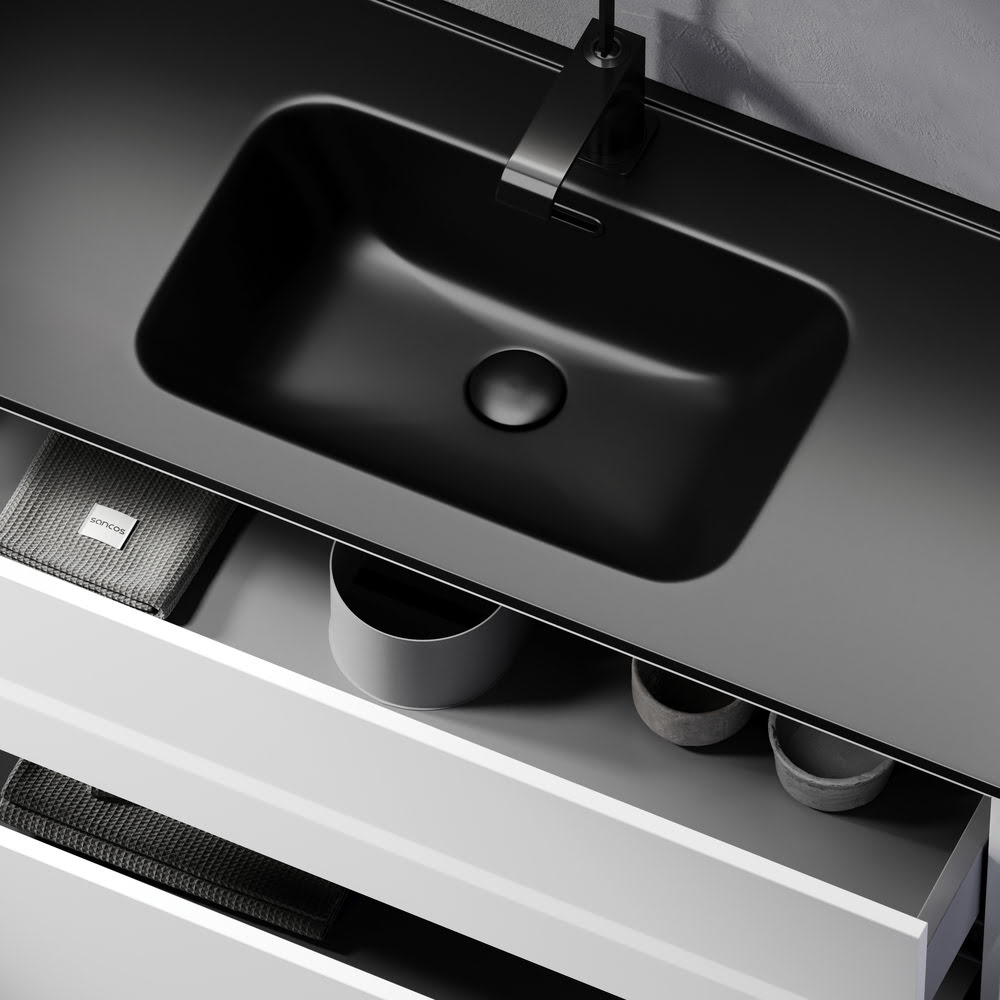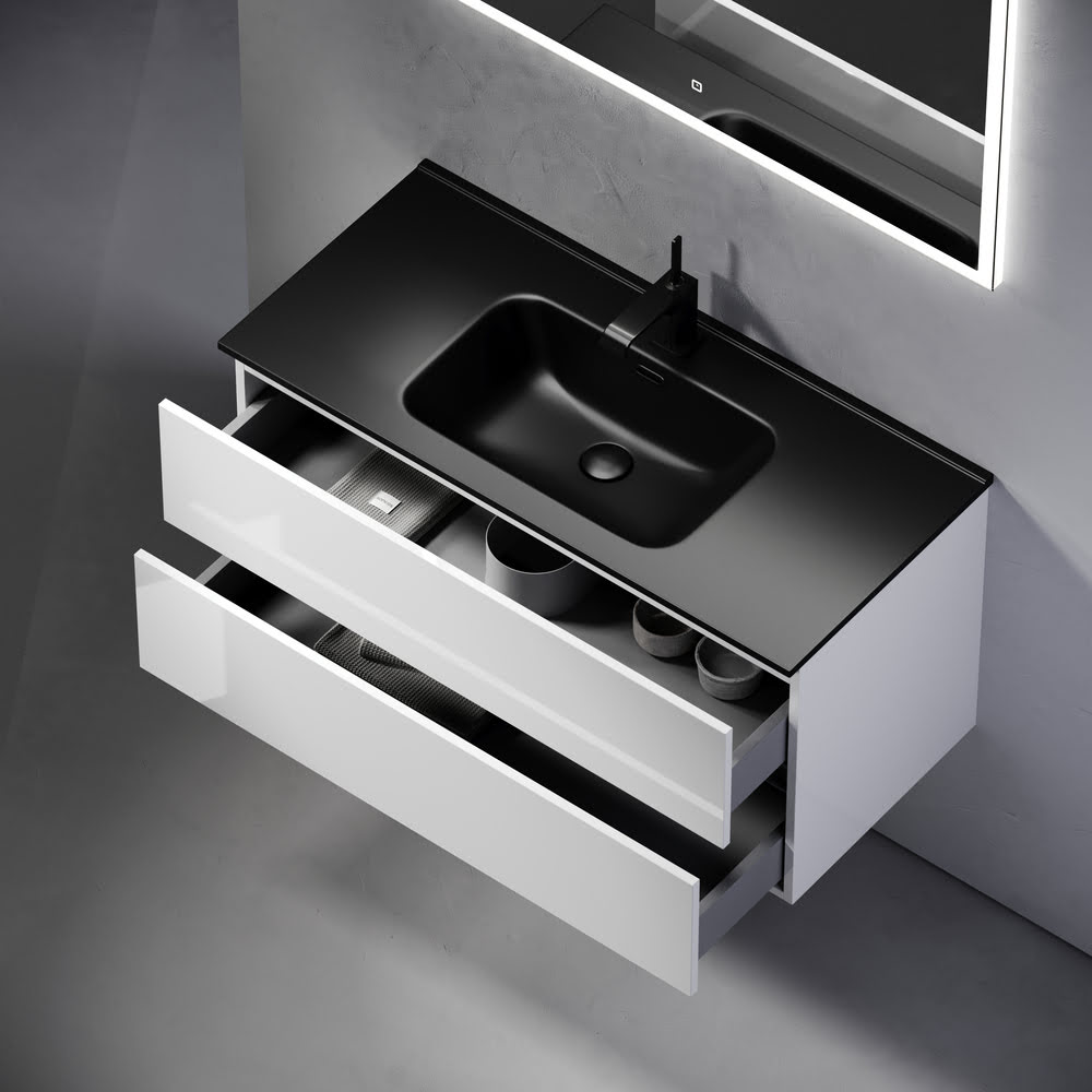 Тумба 100 см Urban ПОДВЕСНАЯ Sancos с умывальником CN7003MB: c двумя ящиками оснащенными доводчиками скрытого монтажа с системой Soft close (плавного закрывания), c ручкой Gola (специальной скрытой ручкой, которая прикрепляется непосредственно на торцевой части фасада, но за которую можно держаться, при открытии и закрытии шкафчиков) по всей длине тумбы, фасад — белый глянец КРАСКА, материал МДФ, корпус — ЛДСП. Комплектуется умывальником — CN7003MB. Размеры умывальника: ширина — 1010 мм, глубина — 465 мм, высота — 180 мм. Монтаж тумбы — подвесной. ВНИМАНИЕ: Тумба 100 см Urban ПОДВЕСНАЯ Sancos ТАКЖЕ СОВМЕСТИМА с умывальниками — CN7003 / CN7013 / CN7013MB / CN7013wx / CN7013MBwx
