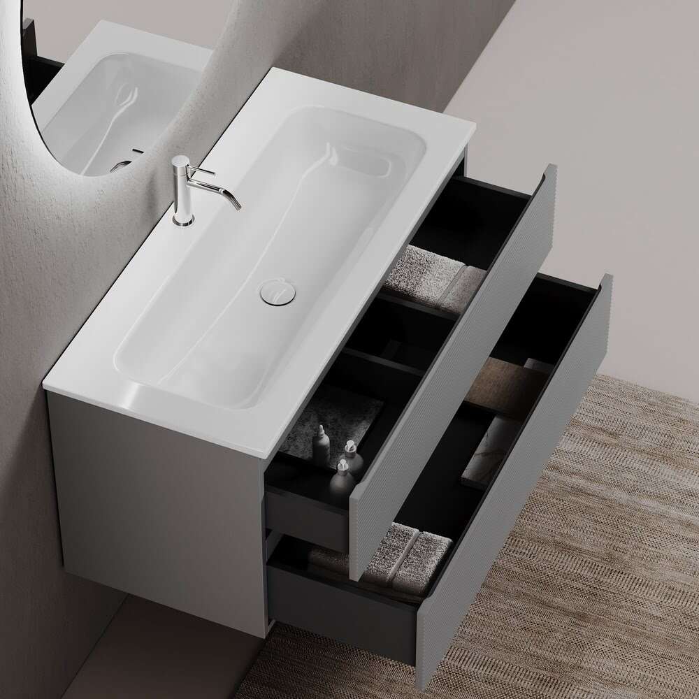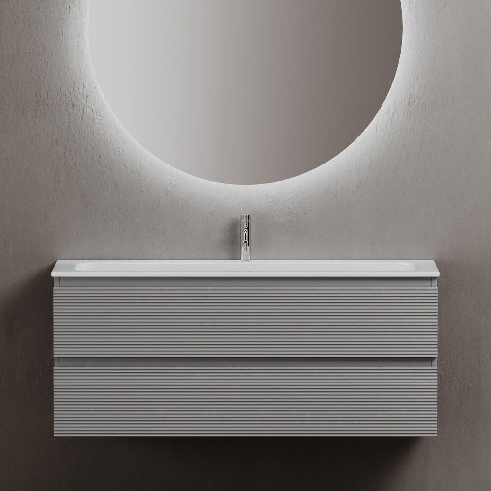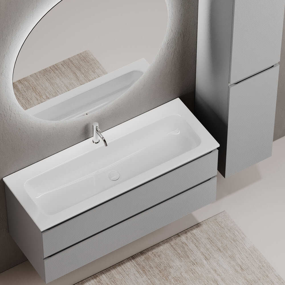 Тумба 120 см Folk Ergraut soft ПОДВЕСНАЯ Sancos с умывальником CN7017: тумба подвесная с рельефным фасадом SANCOS Folk размером 1195 х 445 х 500 мм, c двумя ящиками оснащенными доводчиками скрытого монтажа с системой плавного закрывания Soft close, цвет — Ergraut soft!!! Корпус и фасад тумбы изготовлен из влагостойкого МДФ, покрытого матовой плёнкой ПВХ. Комплектуется умывальником — CN7017. Размеры умывальника: ширина — 1210 мм, глубина — 457 мм, высота — 137 мм. Монтаж тумбы — подвесной. Оснащение — комплект доводчиков, комплект креплений, инструкция. !!!ВНИМАНИЕ: Тумба 120 см Folk Ergraut soft ПОДВЕСНАЯ Sancos ТАКЖЕ СОВМЕСТИМА с умывальниками — СN7016 / CN7016MB / CN7016wx / CN7016MBwx / CN7017MB / CN7006 / CN7006MB / CN7024 / CN7024MB