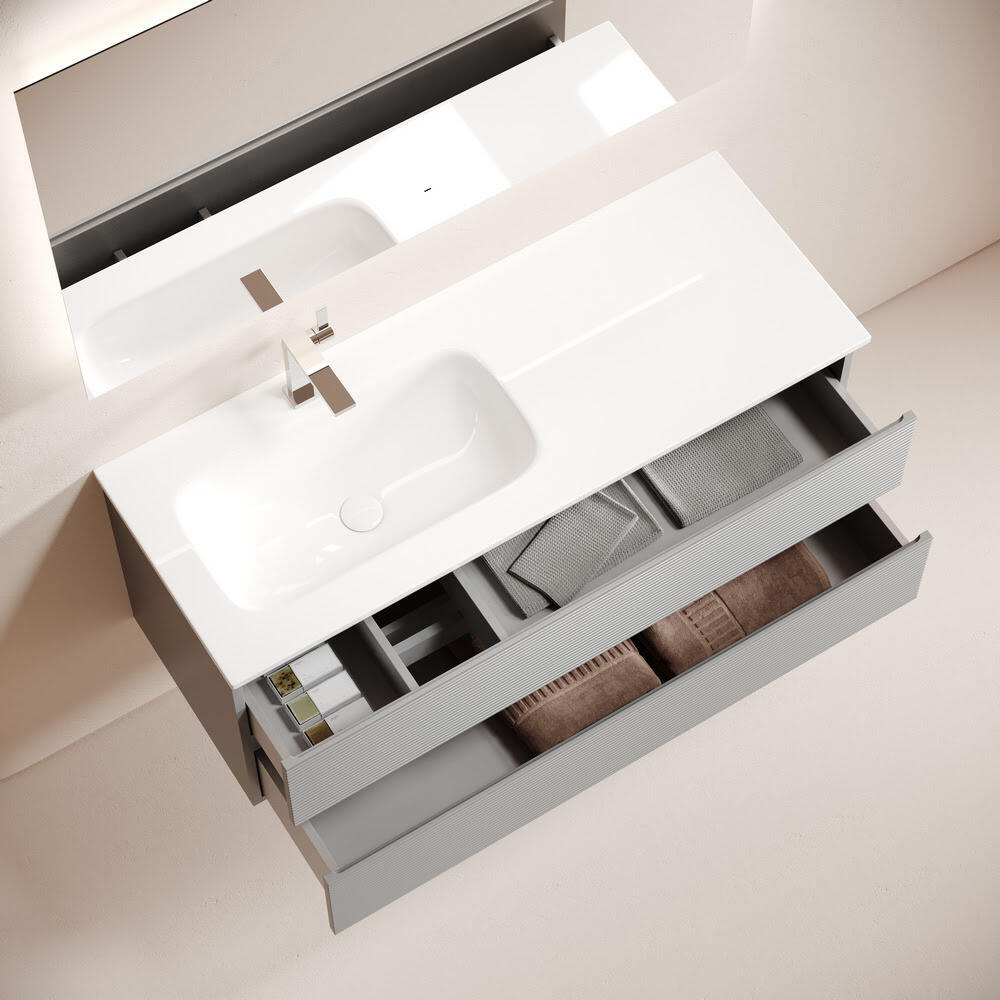 Тумба 120 см Folk Ergraut soft ПОДВЕСНАЯ Sancos с умывальником CN7020: тумба подвесная с рельефным фасадом SANCOS Folk размером 1195 х 445 х 500 мм, c двумя ящиками оснащенными доводчиками скрытого монтажа с системой плавного закрывания Soft close, цвет — Ergraut soft!!! Корпус и фасад тумбы изготовлен из влагостойкого МДФ, покрытого матовой плёнкой ПВХ. Комплектуется умывальником — CN7020. Размеры умывальника: ширина — 1210 мм, глубина — 457 мм, высота — 137 мм. Монтаж тумбы — подвесной. Оснащение — комплект доводчиков, комплект креплений, инструкция. !!!ВНИМАНИЕ: Тумба 120 см Folk Ergraut soft ПОДВЕСНАЯ Sancos ТАКЖЕ СОВМЕСТИМА с умывальником — CN7006L