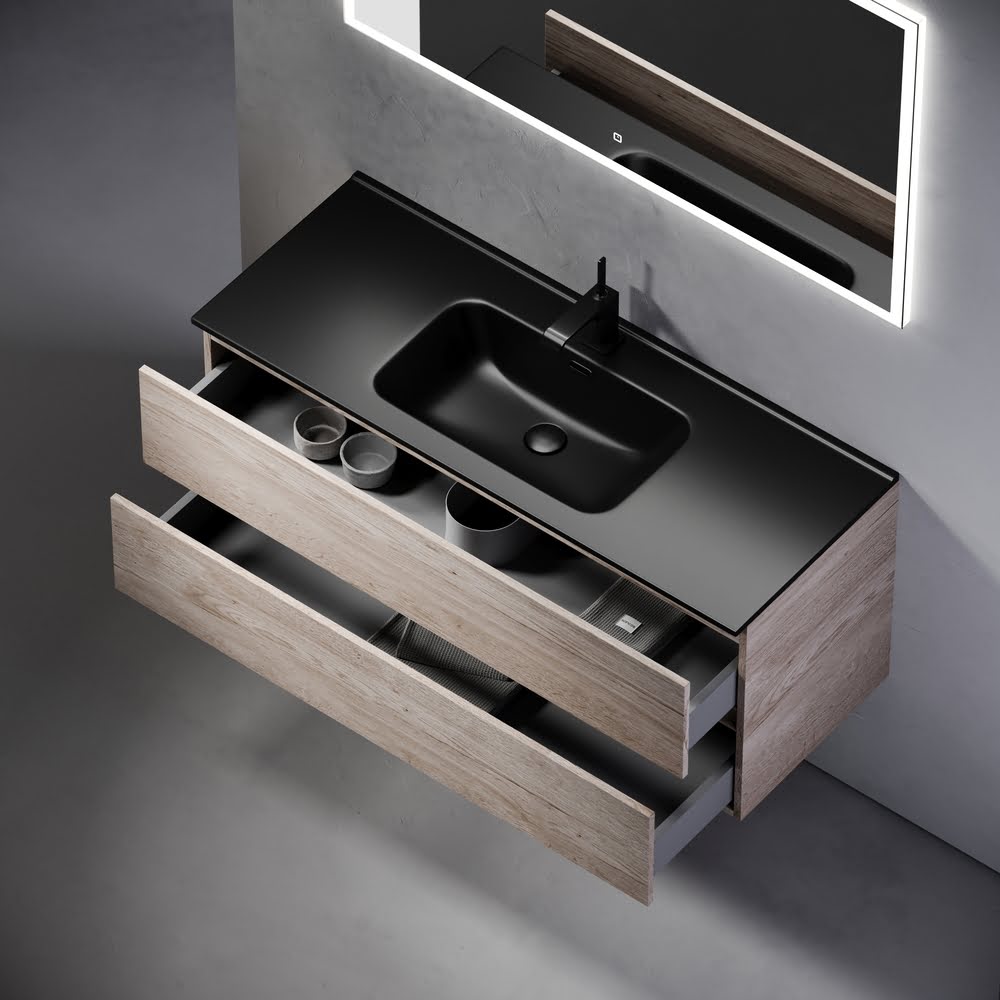 Тумба 120 см Urban ПОДВЕСНАЯ Sancos Дуб Галифакс с умывальником CN7006MB: c двумя ящиками оснащенными доводчиками скрытого монтажа с системой Soft close (плавного закрывания), c ручкой Gola (специальной скрытой ручкой, которая прикрепляется непосредственно на торцевой части фасада, но за которую можно держаться, при открытии и закрытии шкафчиков) по всей длине тумбы, цвет — Дуб Галифакс!!! Материал — ЛДСП. Комплектуется умывальником — CN7006MB. Размеры умывальника: ширина — 1210 мм, глубина — 465 мм, высота — 180 мм. Монтаж тумбы — подвесной. ВНИМАНИЕ: Тумба 120 см Urban ПОДВЕСНАЯ Sancos ТАКЖЕ СОВМЕСТИМА с умывальниками — CN7006