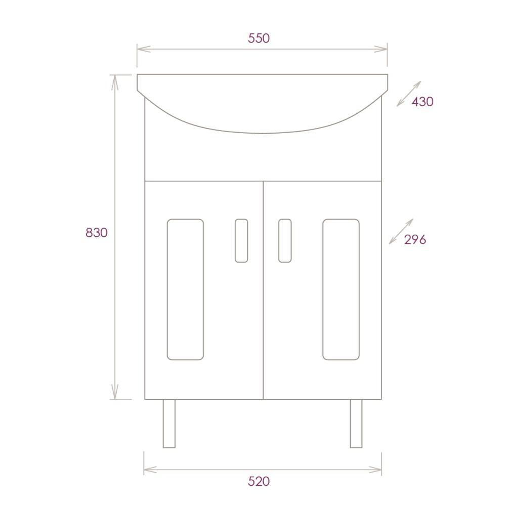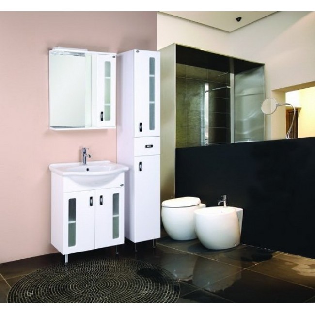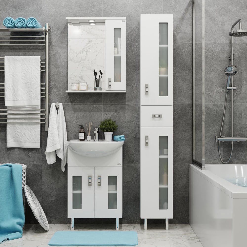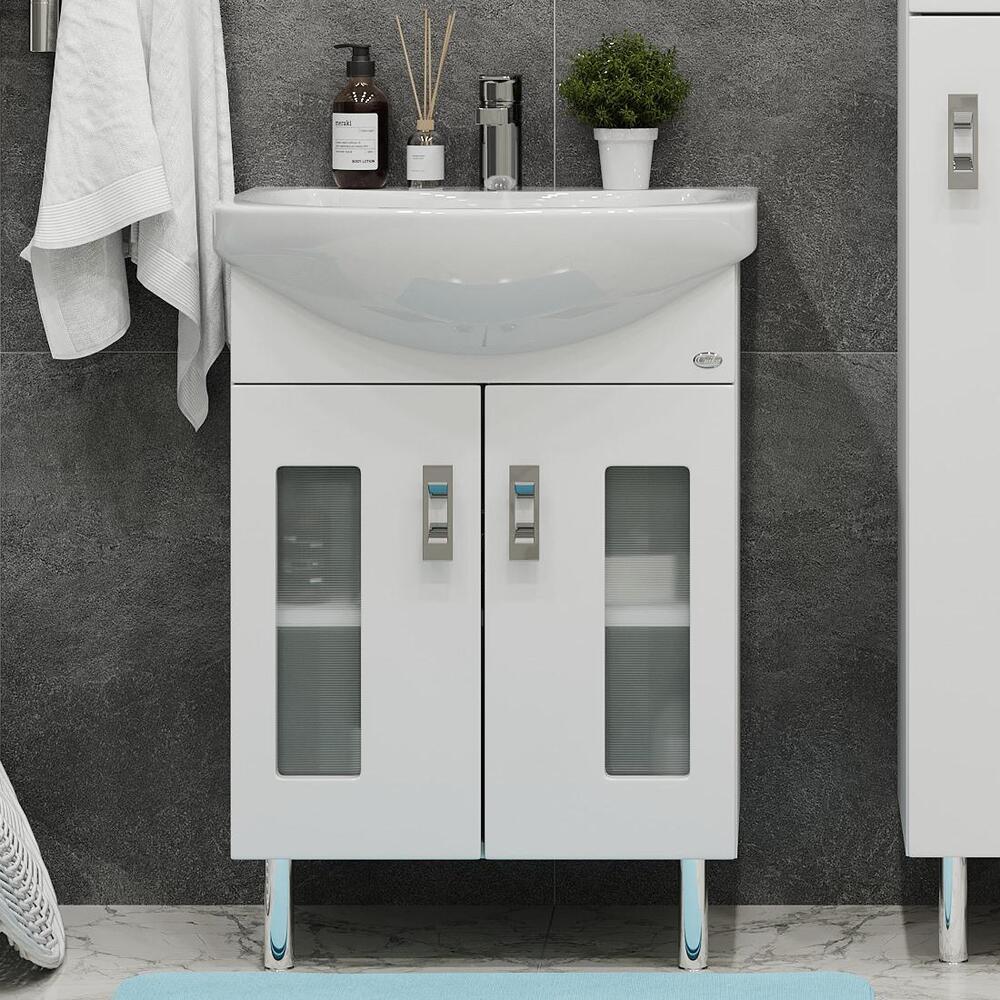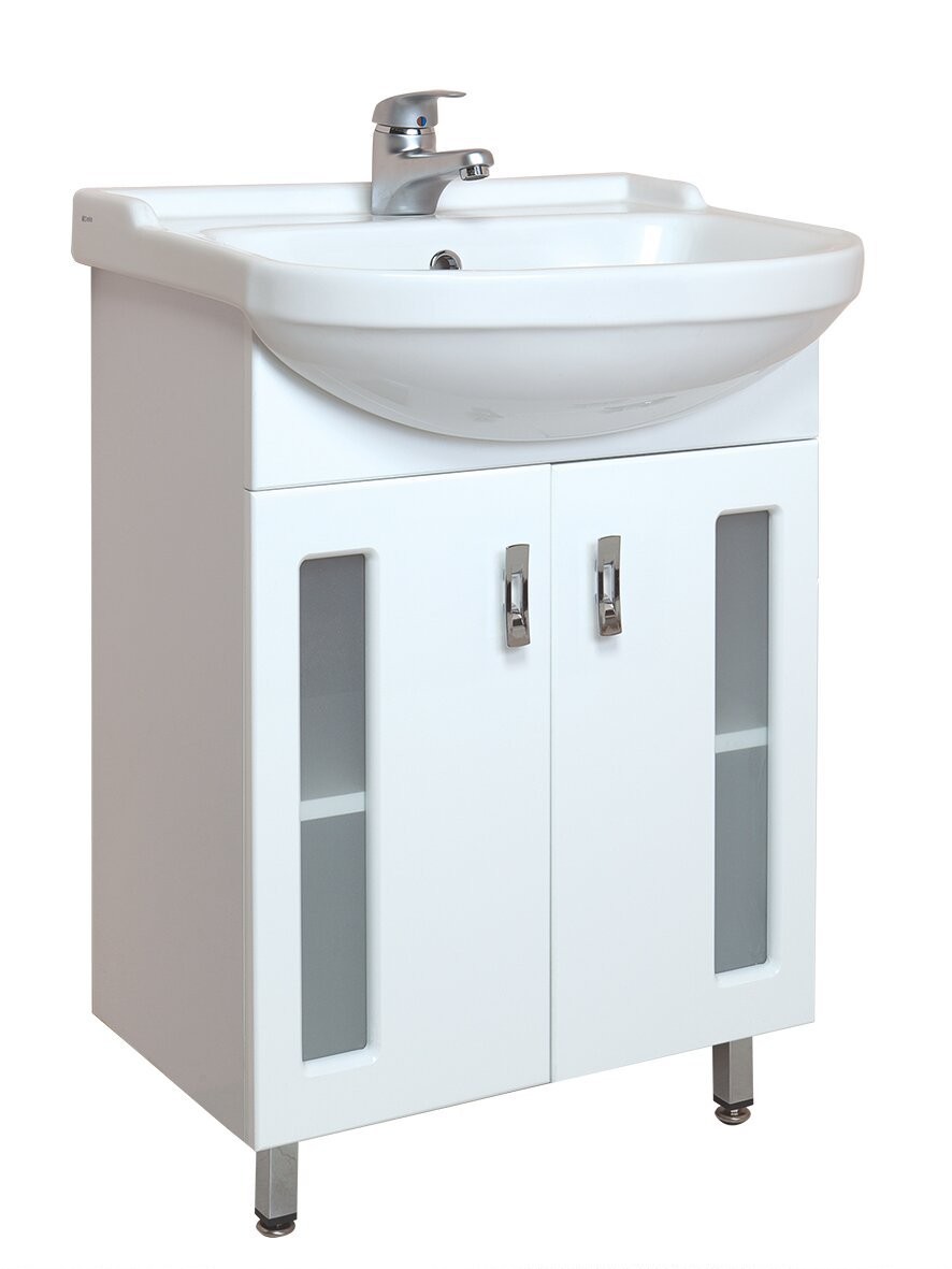Тумба 55 см КРИСТАЛЛ напольная белая с умывальником Балтика-55