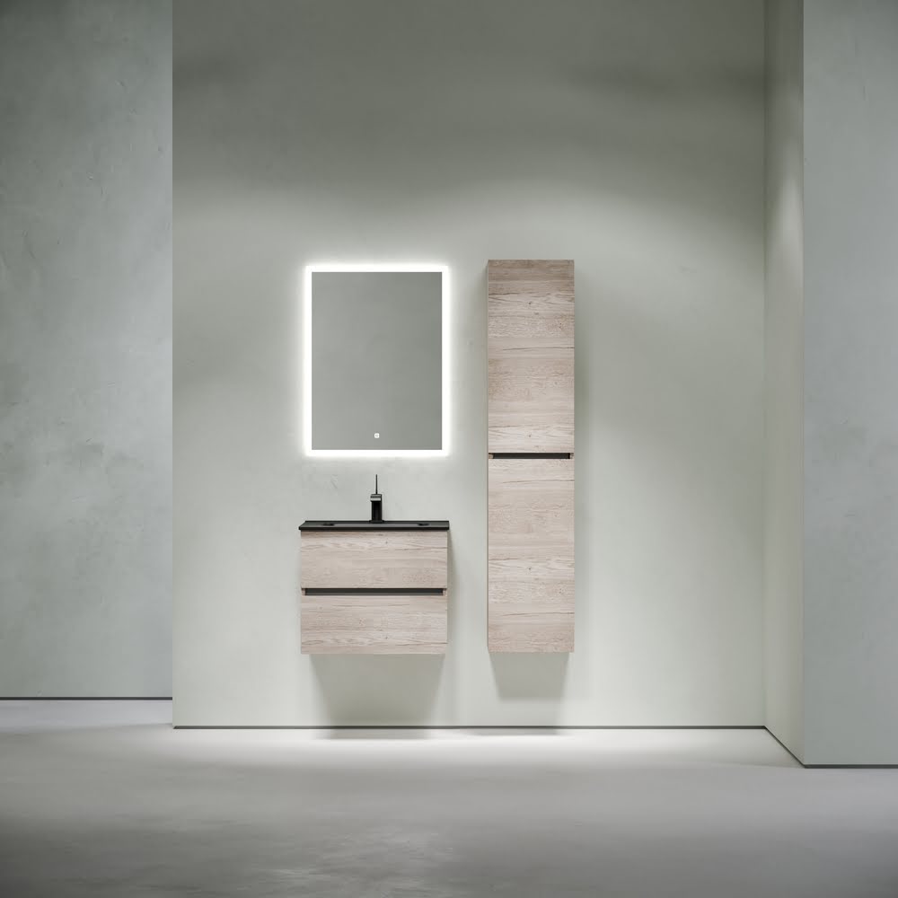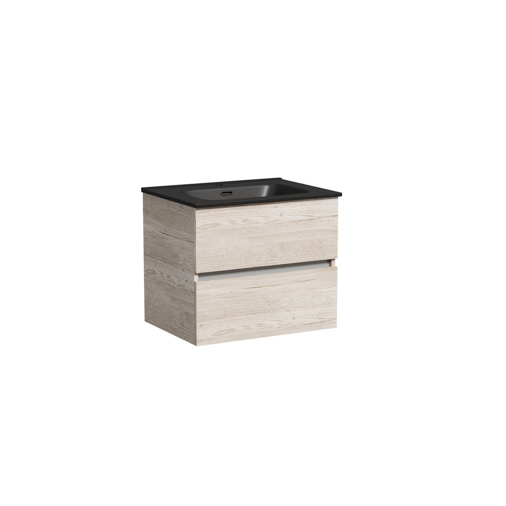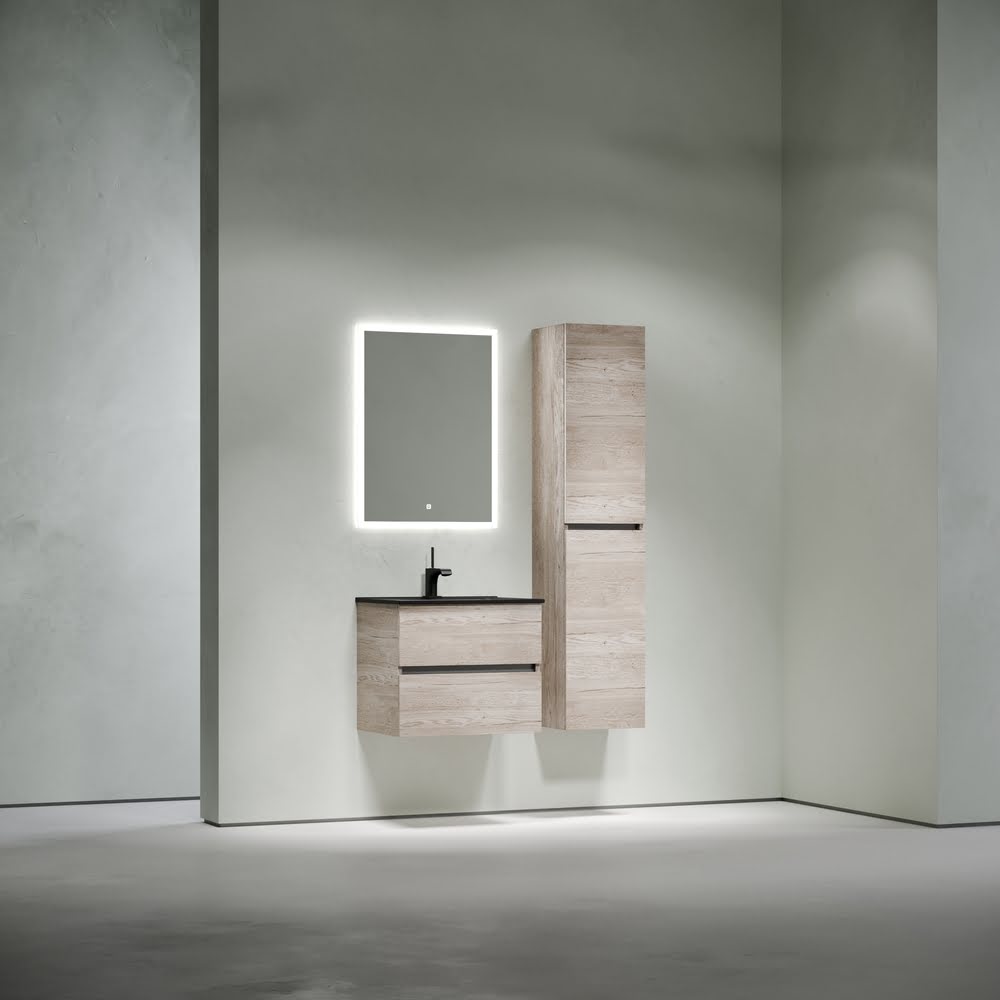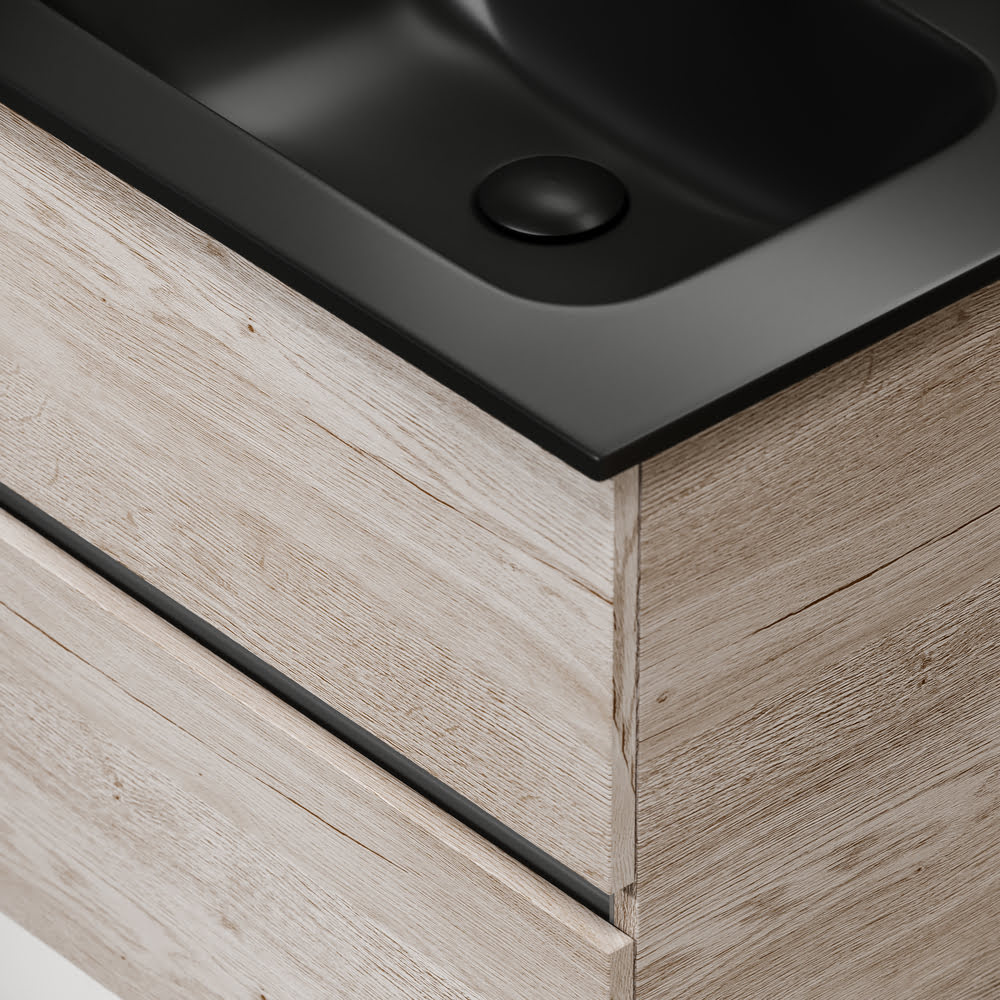 Тумба 60 см Urban ПОДВЕСНАЯ Sancos Дуб галифакс натуральный с умывальником CN7001MB — c двумя ящиками оснащенными доводчиками скрытого монтажа с системой Soft close (плавного закрывания), c ручкой Gola (специальной скрытой ручкой, которая прикрепляется непосредственно на торцевой части фасада, но за которую можно держаться, при открытии и закрытии шкафчиков) по всей длине тумбы, Дуб галифакс натуральный, материал ЛДСП. Комплектуется умывальником ЧЁРНОГО МАТОВОГО цвета CN7001MB. Размеры умывальника: ширина — 610 мм, глубина — 465 мм, высота — 180 мм. Монтаж тумбы — подвесной. ВНИМАНИЕ: Тумба 60 см Urban ПОДВЕСНАЯ Sancos ТАКЖЕ СОВМЕСТИМА с умывальниками — CN7001 / СN7011 / CN7011MB / CN7011wx / CN7011MBwx