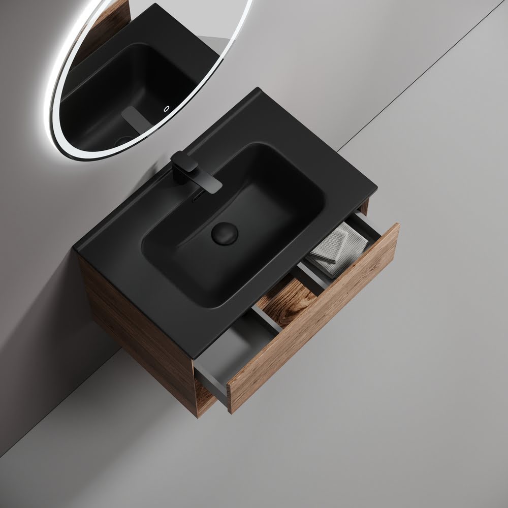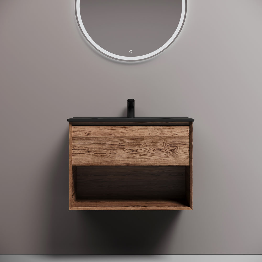 Тумба 70 см Marmi 1.0 Дуб чарльстон ПОДВЕСНАЯ Sancos с умывальником CN7007MB — тумба подвесная SANCOS Marmi 1.0 размером 690 х 445 х 520 мм c одним ящиком оснащенным доводчиками скрытого монтажа с системой Soft close (плавного закрывания) и открытой нишей, c фрезерованной ручкой по всей длине фасада, цвет — Дуб чарльстон!!! Корпус и фасад тумбы изготовлен из ЛДСП, поверхность — матовая!!! Комплектуется умывальником CN7007MB. Размеры умывальника: ширина — 710 мм, глубина — 465 мм, высота — 180 мм. Монтаж тумбы — подвесной. Оснащение — комплект доводчиков, комплект креплений, инструкция. !!!ВНИМАНИЕ: Тумба 70 см Marmi 1.0 Дуб чарльстон ПОДВЕСНАЯ Sancos ТАКЖЕ СОВМЕСТИМА с умывальниками — CN7007MB / CN7022 / CN7022wx / CN7022MB / CN7022MBwx