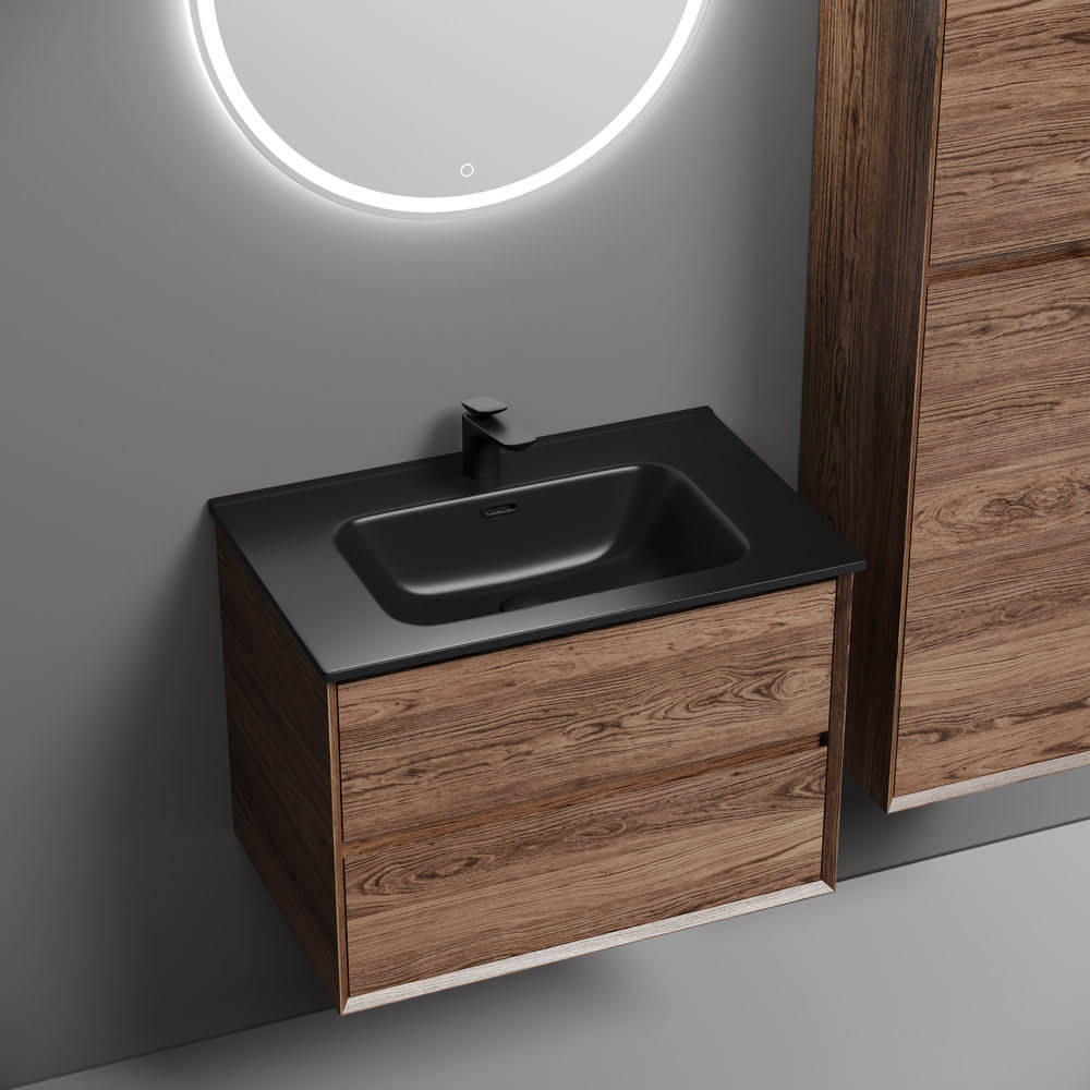 Тумба 70 см Marmi 2.0 Дуб чарльстон ПОДВЕСНАЯ Sancos с умывальником CN7007MB — тумба подвесная SANCOS Marmi 2.0 размером 690 х 445 х 520 мм c двумя ящиками оснащенными доводчиками скрытого монтажа с системой Soft close (плавного закрывания), c фрезерованной ручкой по всей длине фасада, цвет — Дуб чарльстон!!! Корпус и фасад тумбы изготовлен из ЛДСП, поверхность — матовая!!! Комплектуется умывальником CN7007MB. Размеры умывальника: ширина — 710 мм, глубина — 465 мм, высота — 180 мм. Монтаж тумбы — подвесной. Оснащение — комплект доводчиков, комплект креплений, инструкция. !!!ВНИМАНИЕ: Тумба 70 см Marmi 2.0 Дуб чарльстон ПОДВЕСНАЯ Sancos ТАКЖЕ СОВМЕСТИМА с умывальниками — CN7007 / CN7022 / CN7022wx / CN7022MB / CN7022MBwx