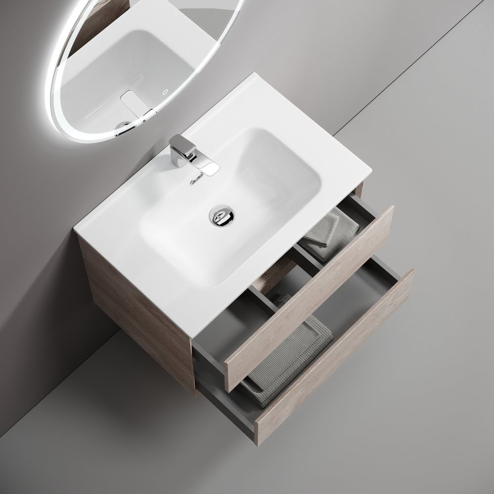Тумба 70 см Marmi 2.0 Дуб галифакс ПОДВЕСНАЯ Sancos с умывальником CN7007 — тумба подвесная SANCOS Marmi 2.0 размером 690 х 445 х 520 мм c двумя ящиками оснащенными доводчиками скрытого монтажа с системой Soft close (плавного закрывания), c фрезерованной ручкой по всей длине фасада, цвет — Дуб галифакс!!! Корпус и фасад тумбы изготовлен из ЛДСП, поверхность — матовая!!! Комплектуется умывальником CN7007.  Размеры умывальника: ширина — 710 мм, глубина — 465 мм, высота — 180 мм.  Монтаж тумбы — подвесной. Оснащение — комплект доводчиков, комплект креплений, инструкция. !!!ВНИМАНИЕ: Тумба 70 см Marmi 2.0 Дуб галифакс ПОДВЕСНАЯ Sancos ТАКЖЕ СОВМЕСТИМА с умывальниками — CN7007MB / CN7022 / CN7022wx / CN7022MB / CN7022MBwx