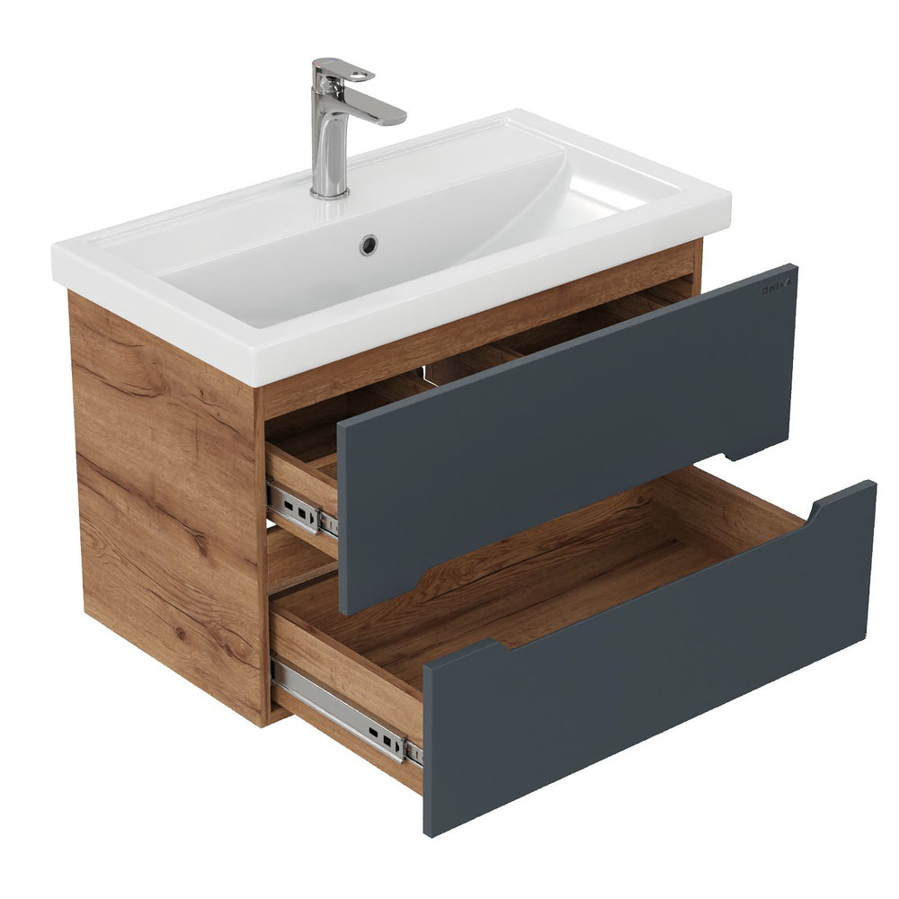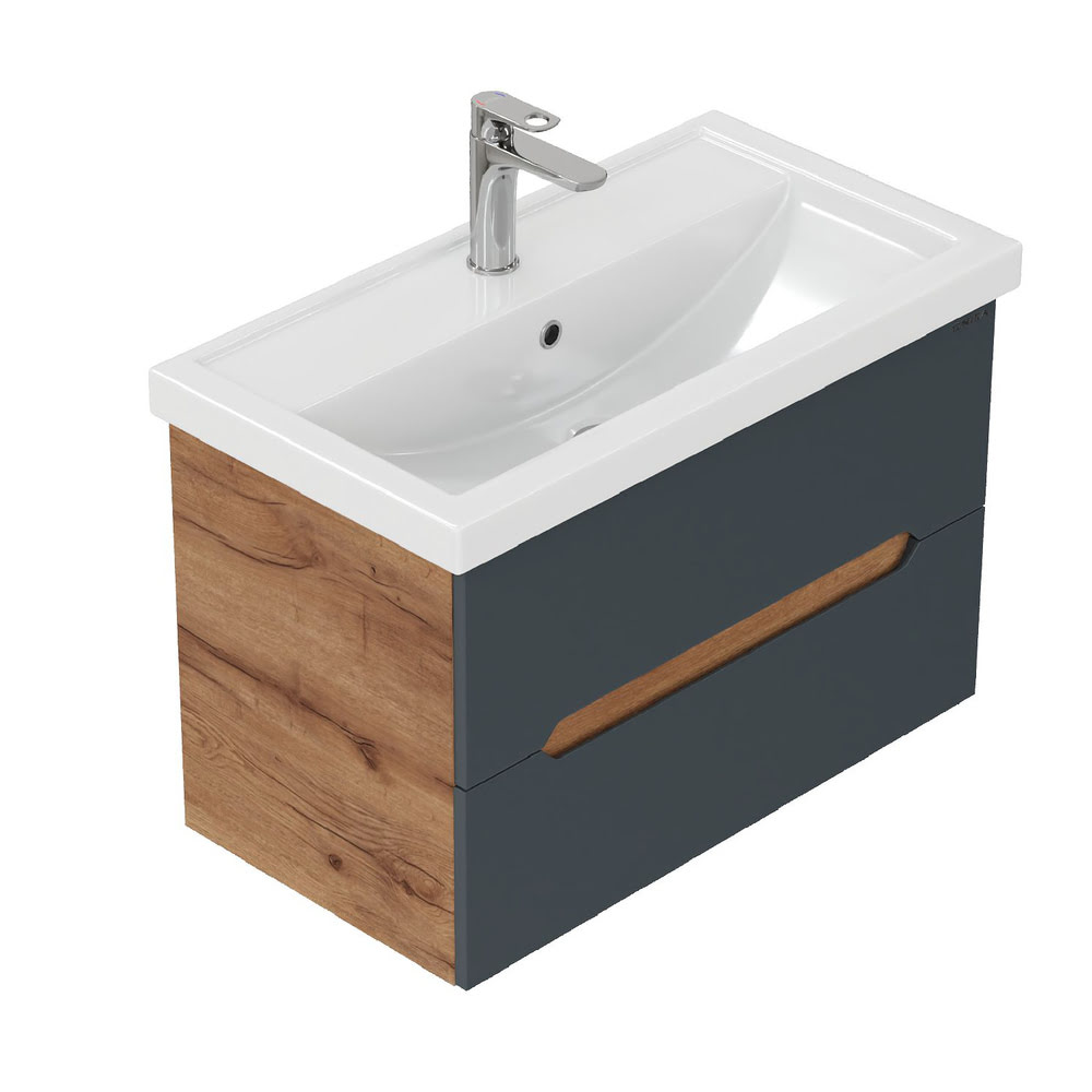 Тумба 80 см АЙЛЕНД подвесная Графит/дуб крафт золотой с умывальником Фостер-80